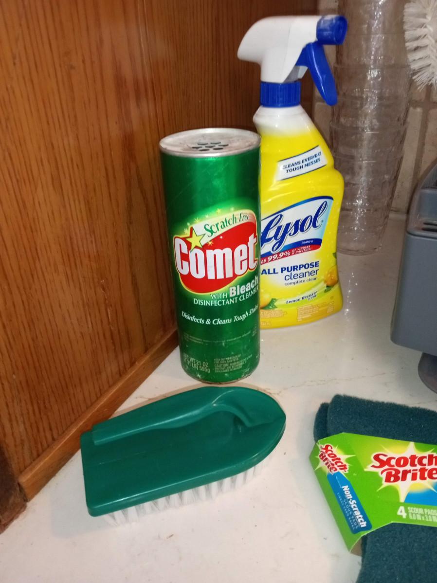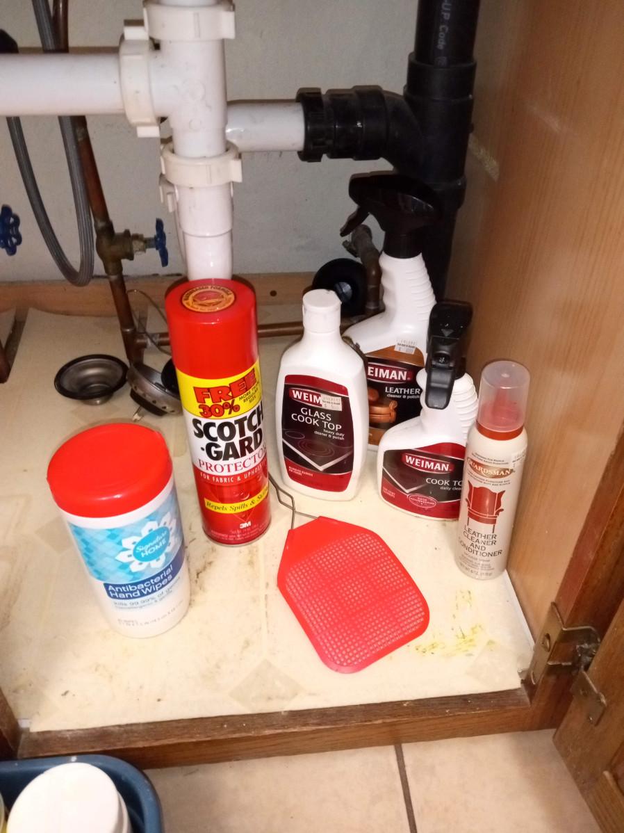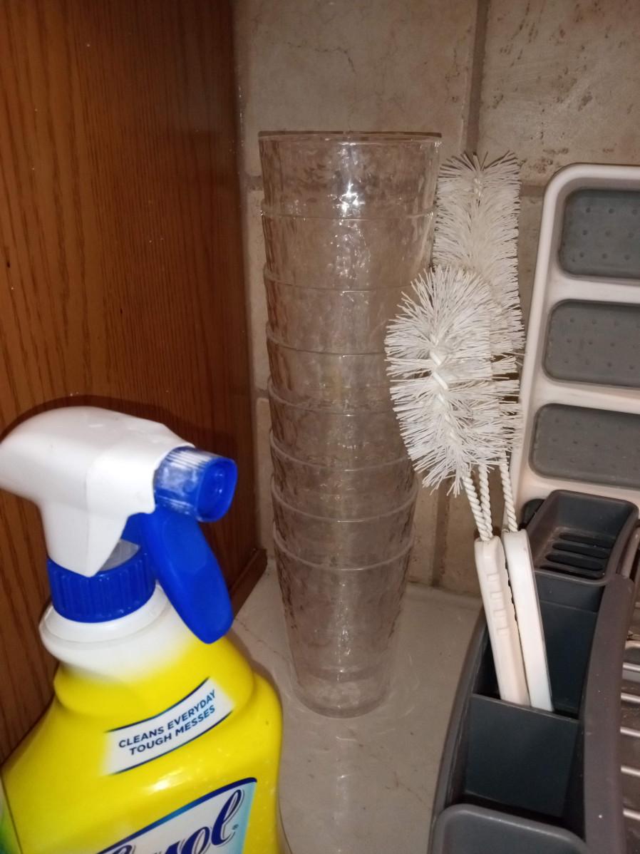 LOT 338 KITCHEN AID DISH DRYING RACK, CLEANING SUPPLIES & DRAWER ORGANIZER