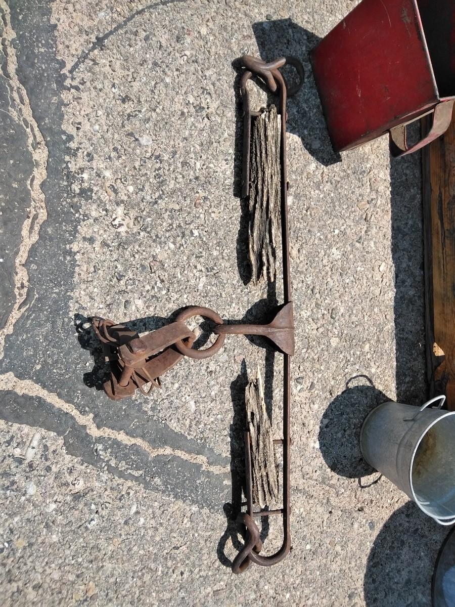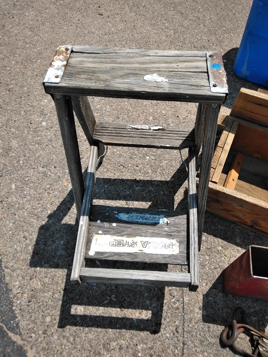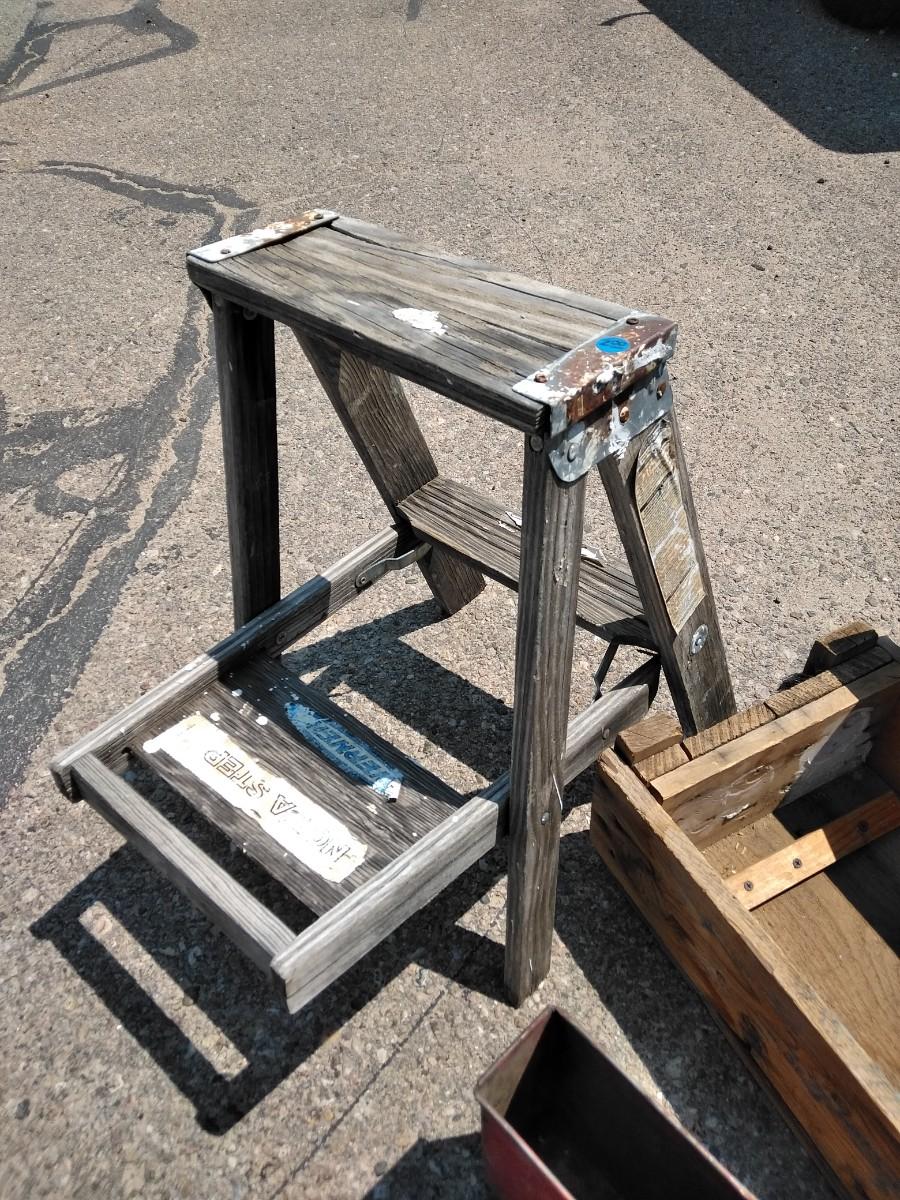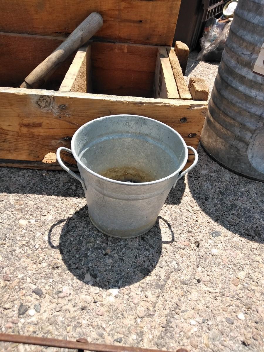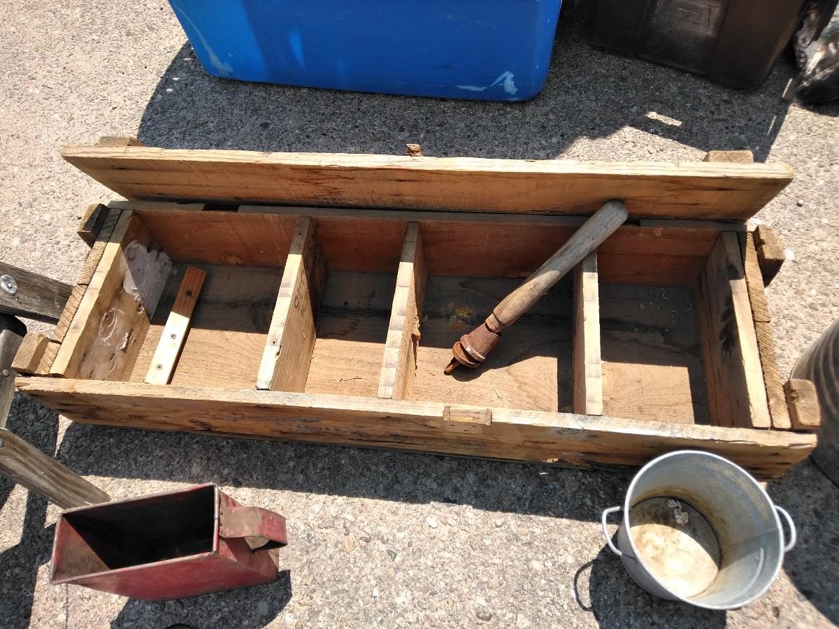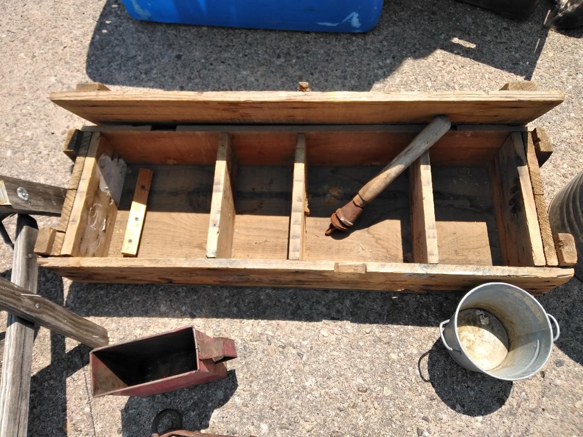GREAT ITEMS TO REPURPOSE OR DISPLAY! VINTAGE FARM ITEMS, WOOD CRATE WITH LID, OLD LADDER (NOT FOR USE) TIN BUCKETS, AND MORE