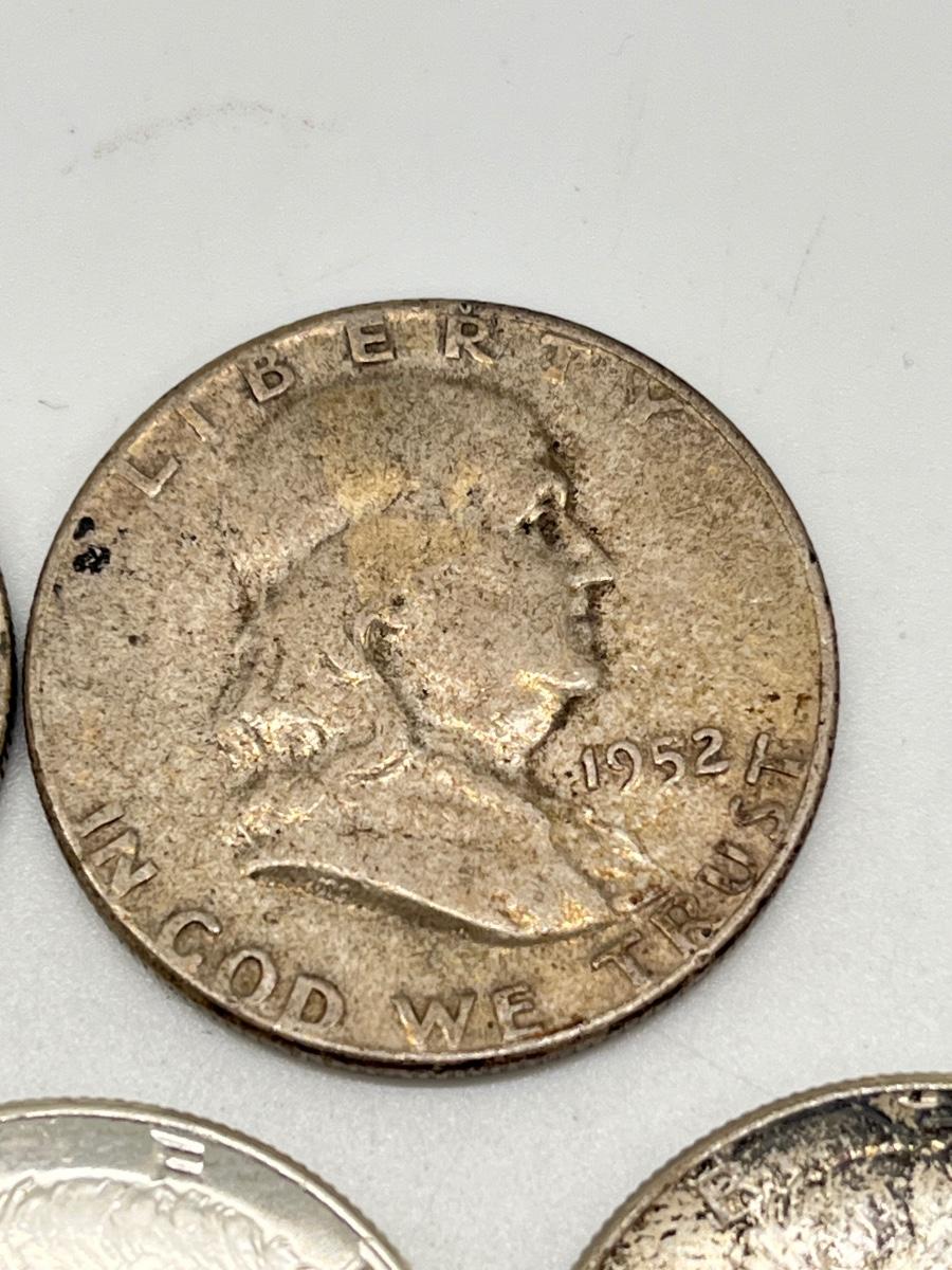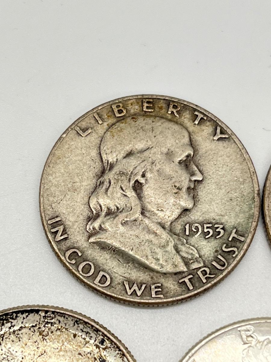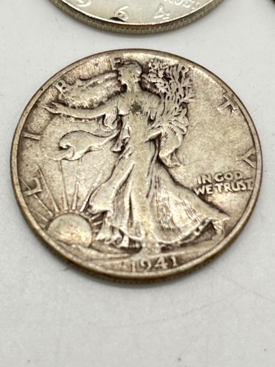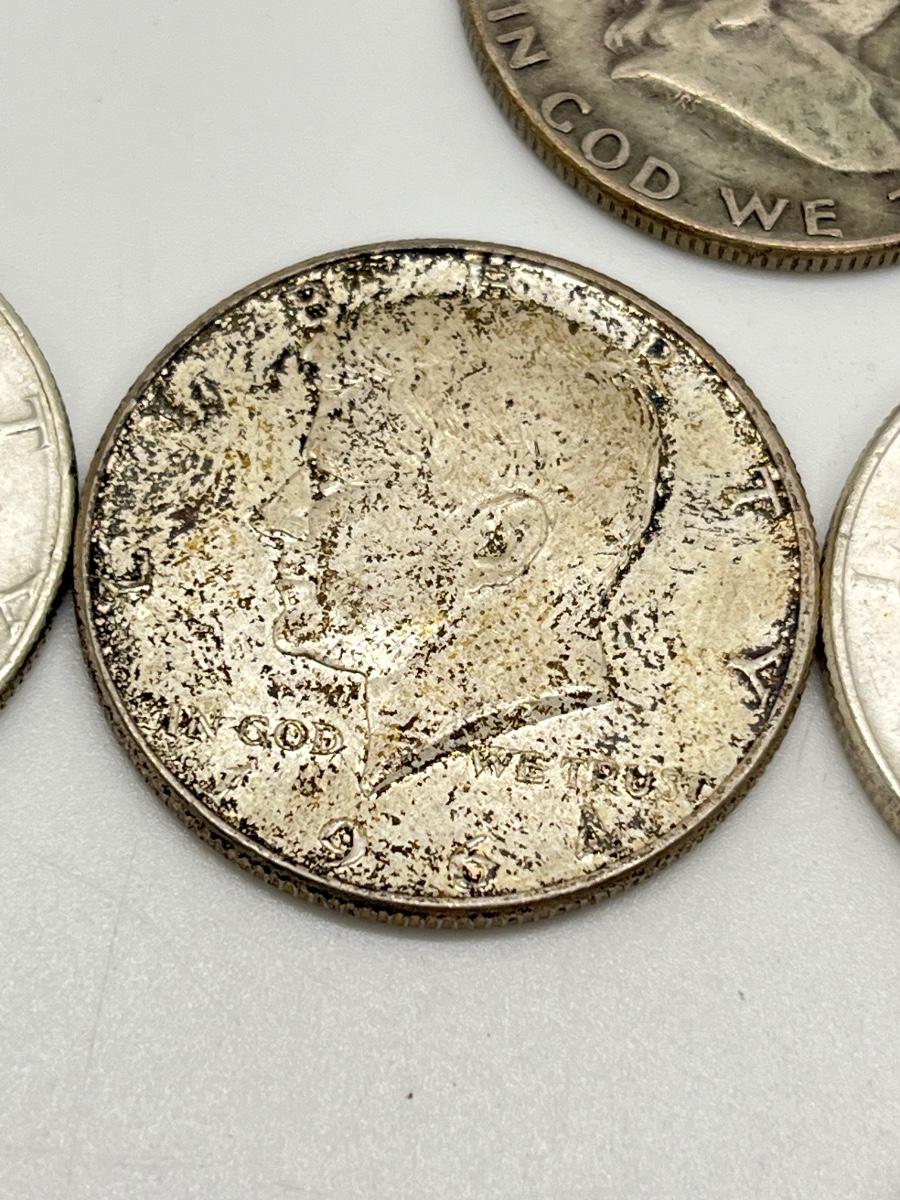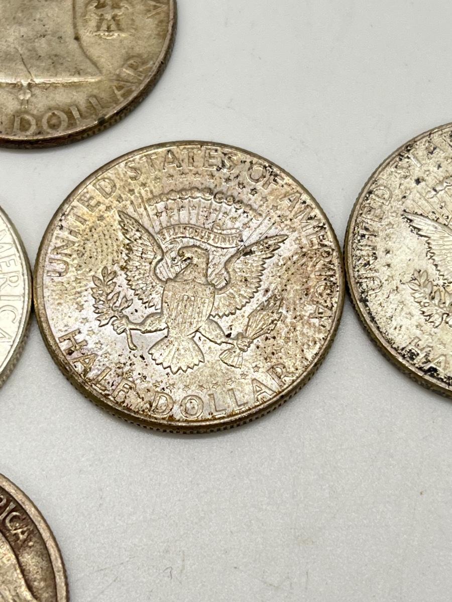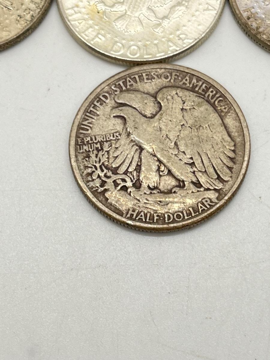 Lot 338J: Silver U.S. Half Dollars - 1 Walking Liberty, 2 Benjamin Franklin, 4 90% Silver JFK, 1 40% JFK
