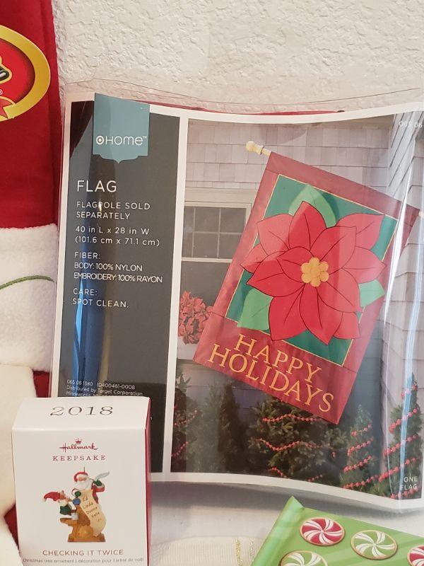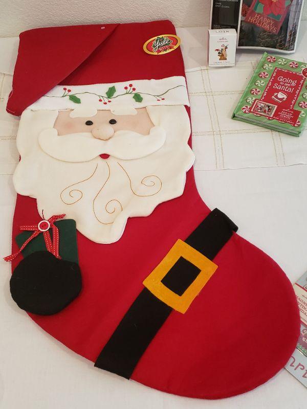 Lot 341: New - Large Stocking, Magnet Set, Pop Up Christmas Picture Frame/Book & Outdoor Flag