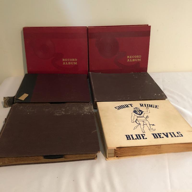 This lot includes a large collection of vintage record in six record books. It Includes red Lincoln records and such labels as Capitol, Majestic Decca, RCA Victor, Like Nadine, Diamond and more. The records are 10” records. The lot also also includes two empty record books.