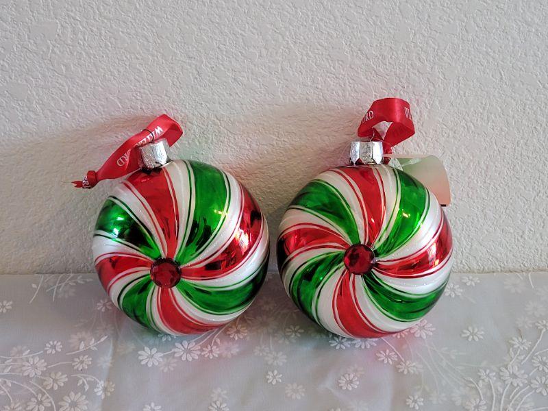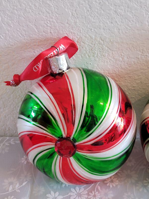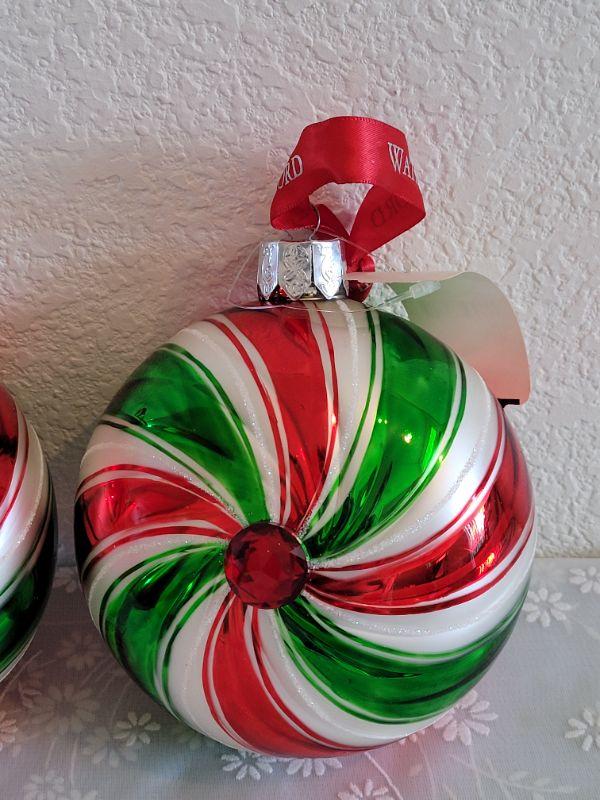 Lot 339: (2) New Retired Waterford Glass Peppermint Ornaments