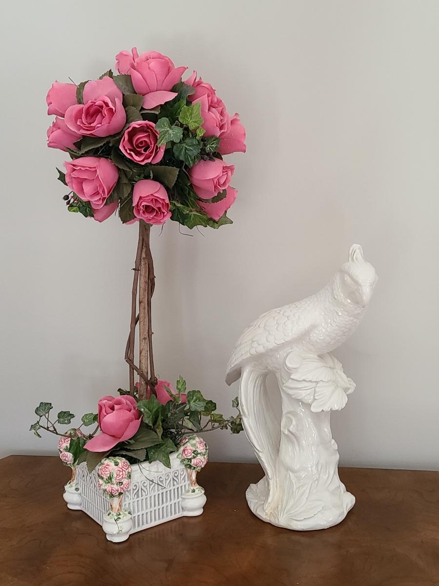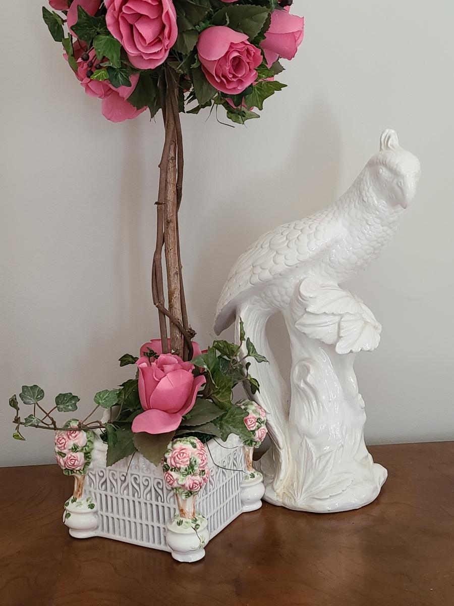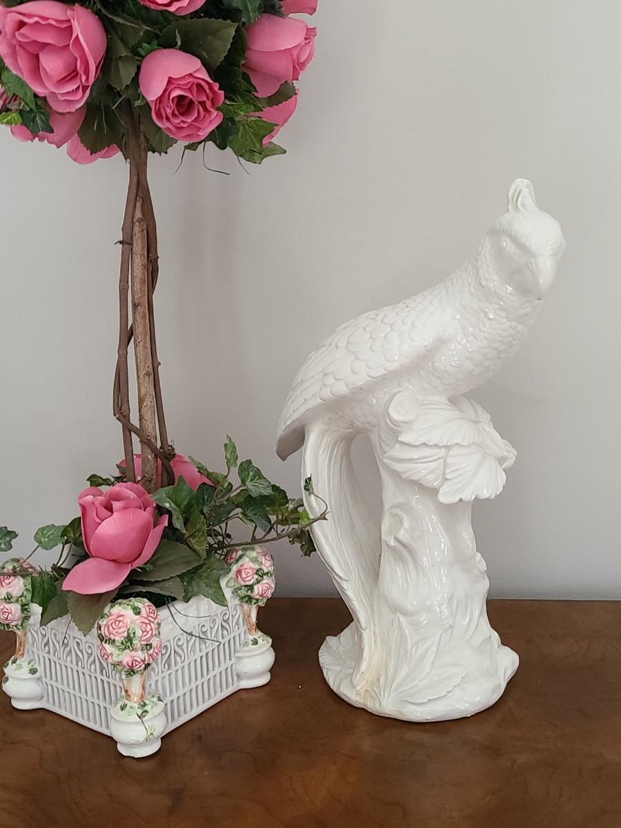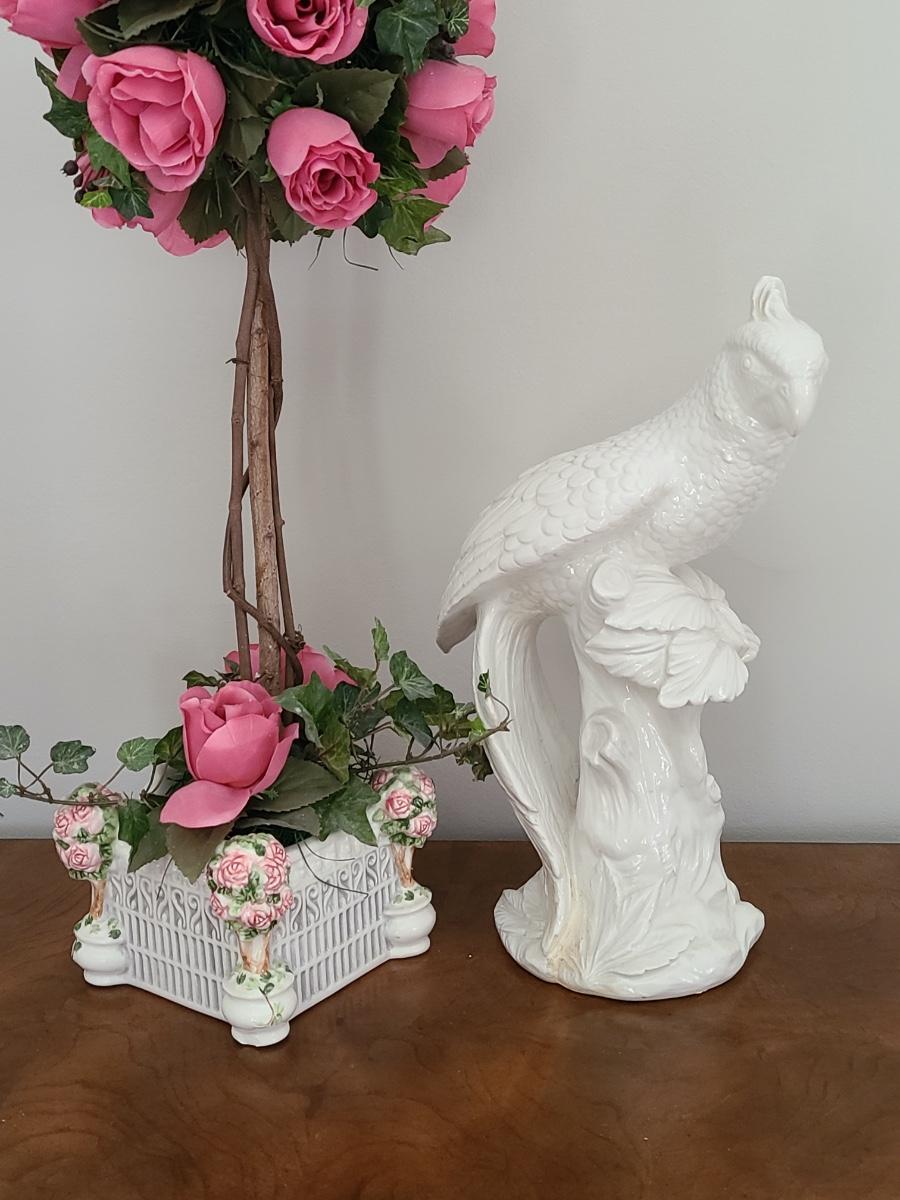 Lot 339: MCM Parrot Sculpture Made in Italy & Floral Arrangement