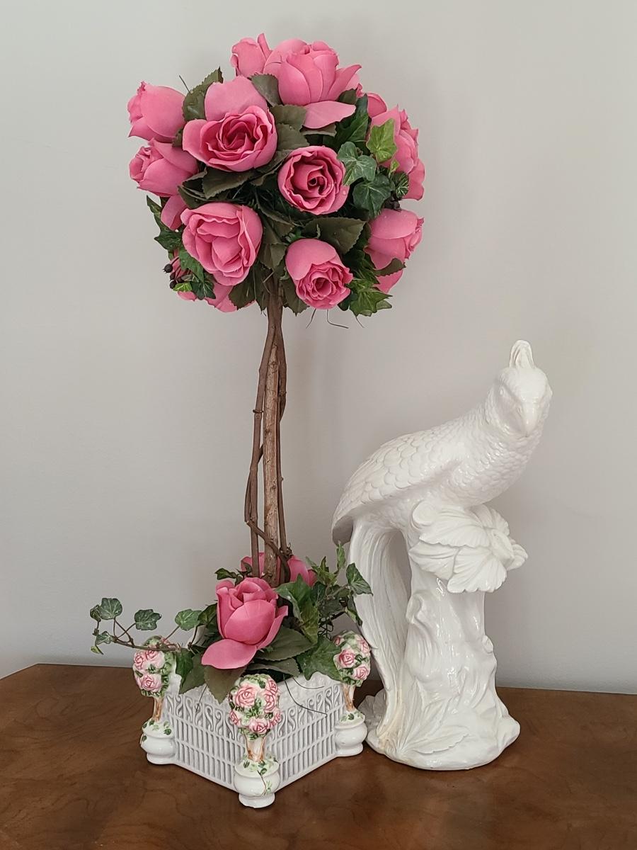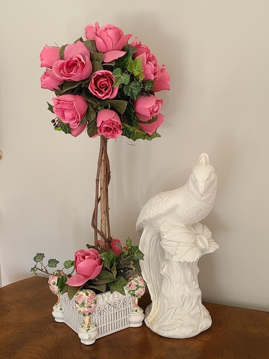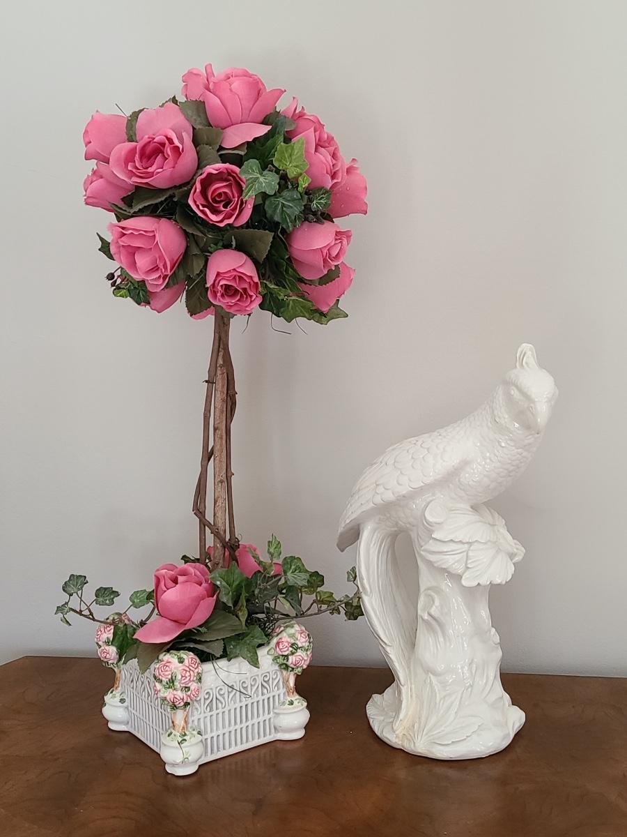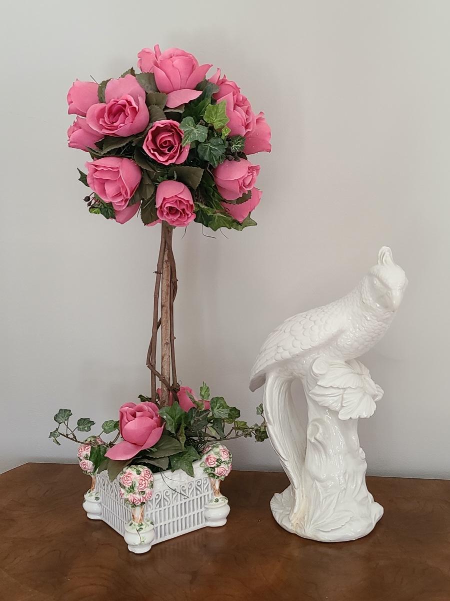 Lot 339: MCM Parrot Sculpture Made in Italy & Floral Arrangement