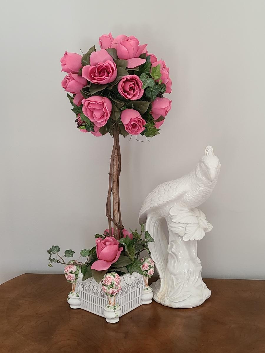 The client was an interior designers in the 70's-90s and has a collection of designer pieces. This parrot ceramic sculpture made in Italy was purchased as a designer warehouse. Gorgeous piece for any room in the home! Comes with a modern piece of home decor, a floral arrangement in pinks and whites. Please see all pictures as they are the best representation of the items. The pictures show condition, measurements if taken, and what is included in the lot. Due to the large amount that we photograph and the time frame, we are not always able to take measurements. All items unless noted, are pre-owned and have been used. If you purchased furniture, you must bring help. We do not allow one person to carry large furniture out on their own. Bring help, tools and a truck for the safety of our client’s homes, and your personal safety. Company policy. Thank you.