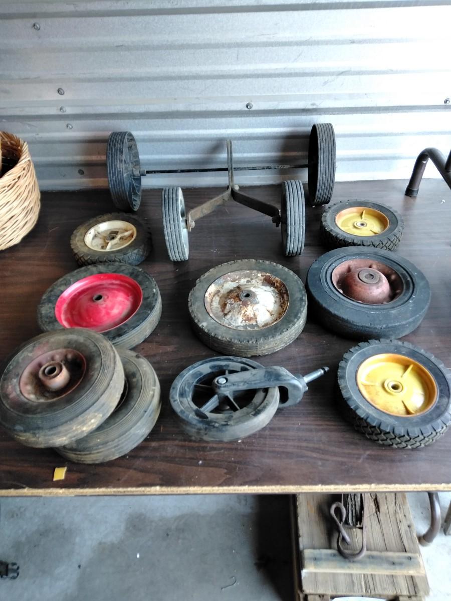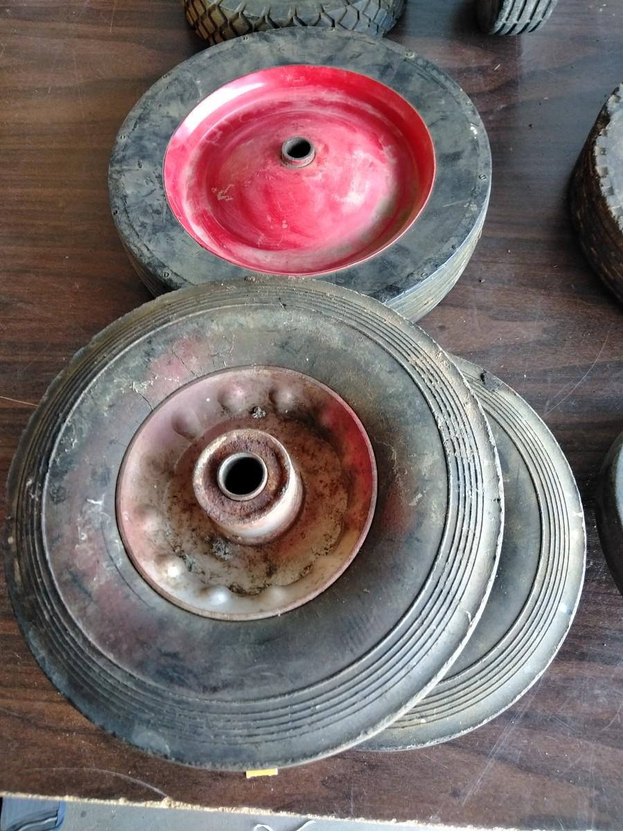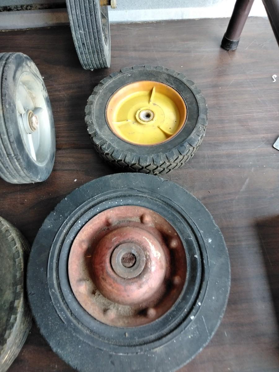 ASSORTMENT OF SMALL TIRES FOR WHEEL BARROW, DOLLLIES, AND MORE