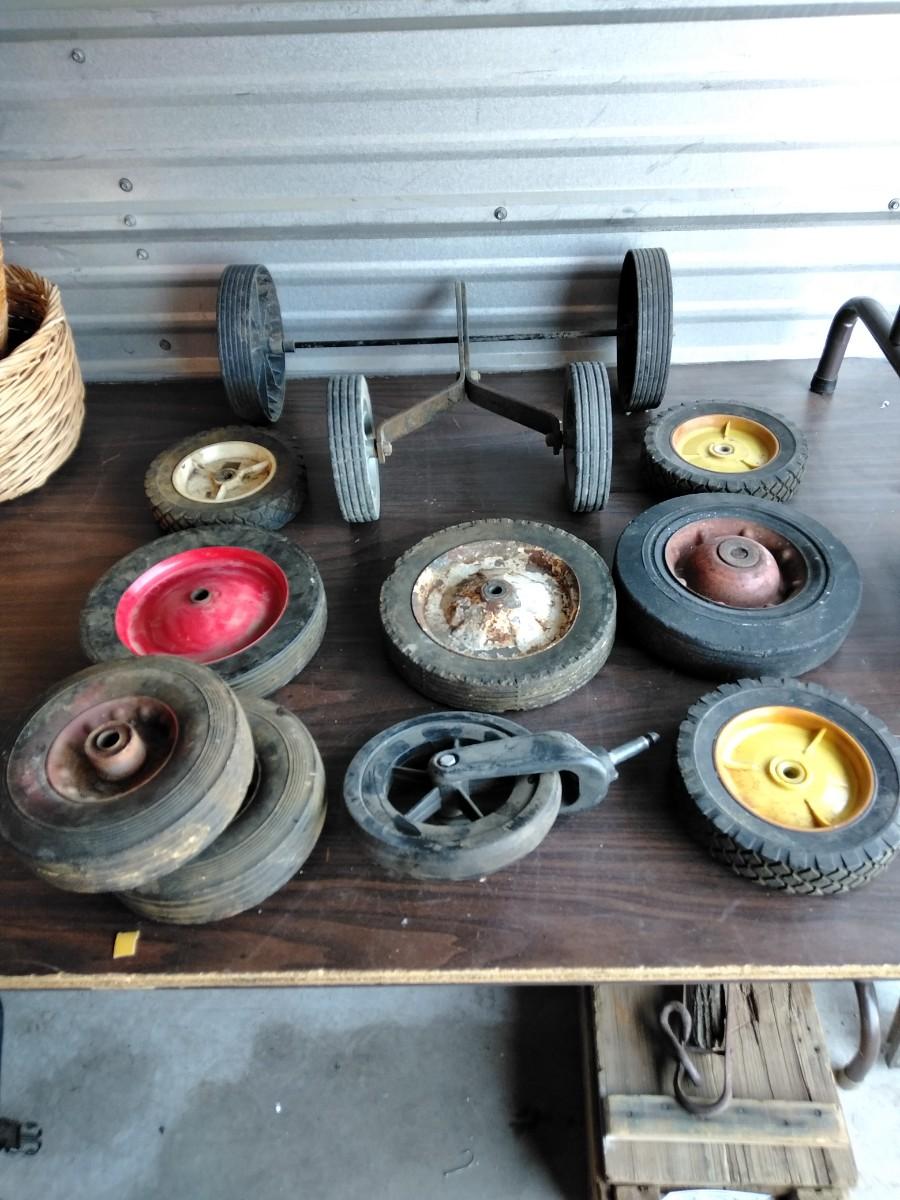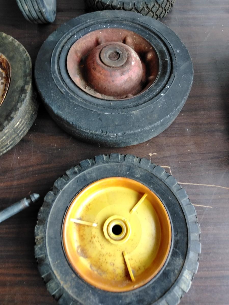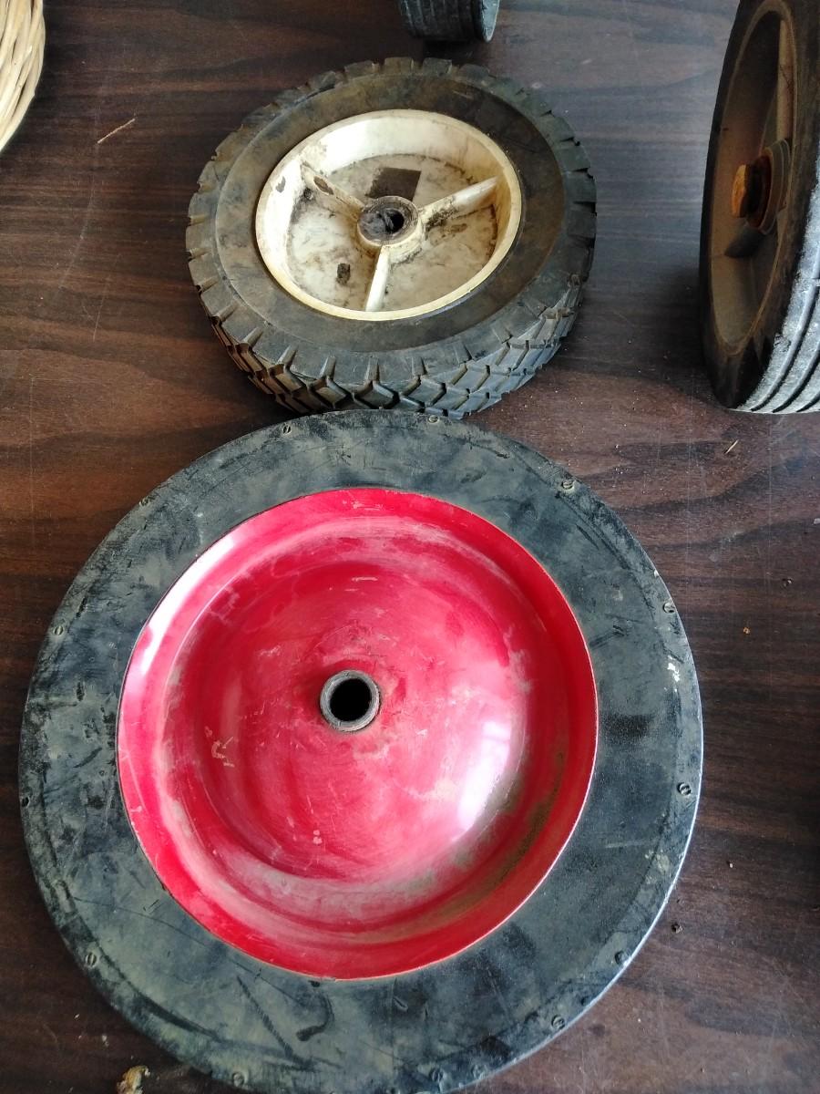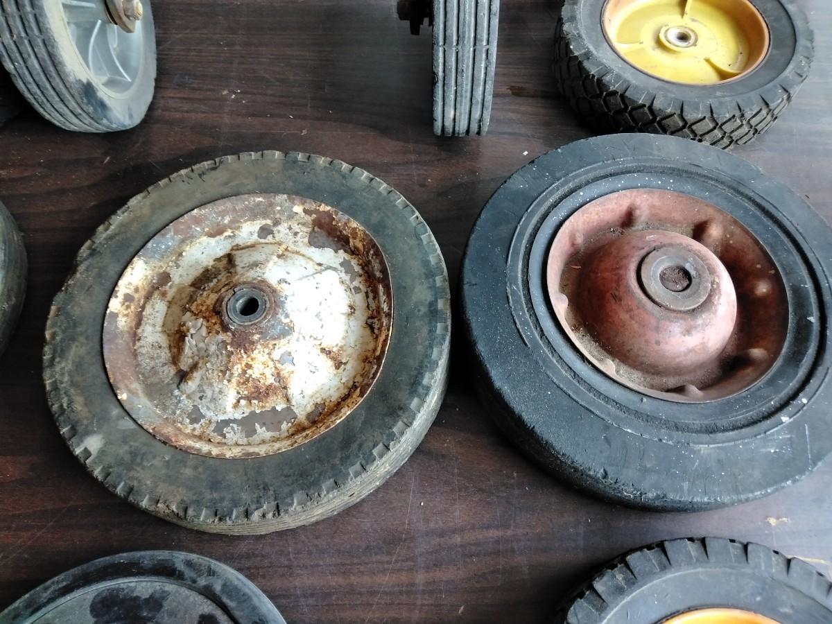 ASSORTMENT OF SMALL TIRES FOR WHEEL BARROW, DOLLLIES, AND MORE