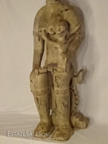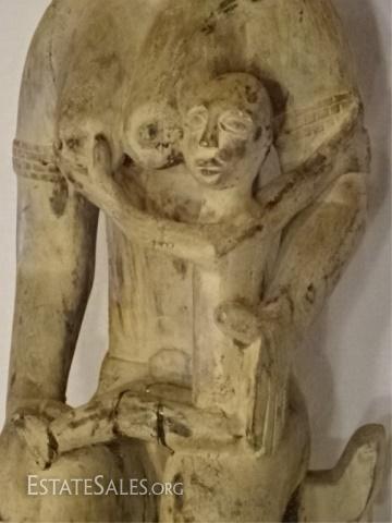 LOT 33C: LARGE AFRICAN CARVED WOOD SCULPTURE, MOTHER WITH CHILD, VERY GOOD CONDITION, 52"H X 11"W X 10"D, SKU390.11