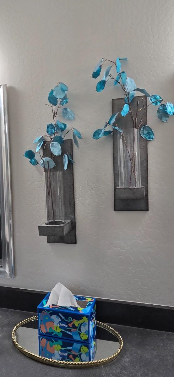 Set of metal vase holders / Metal Trash Can / Mirrored Tray