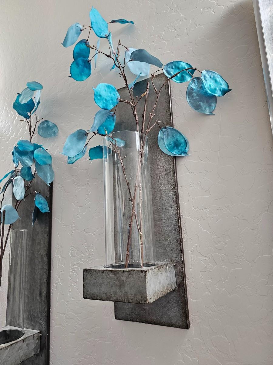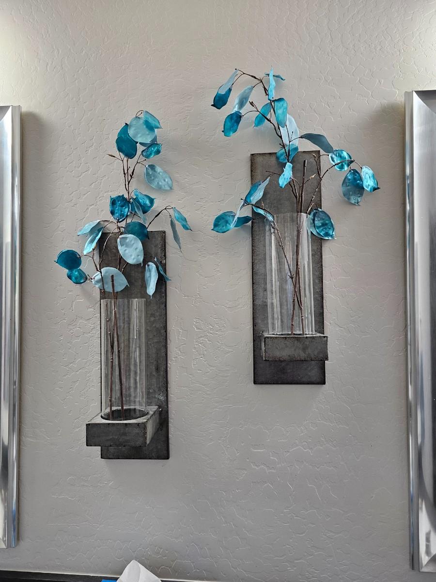 Lot 34: Set of Metal Vase Holders / Metal Trash Can / Mirrored Tray