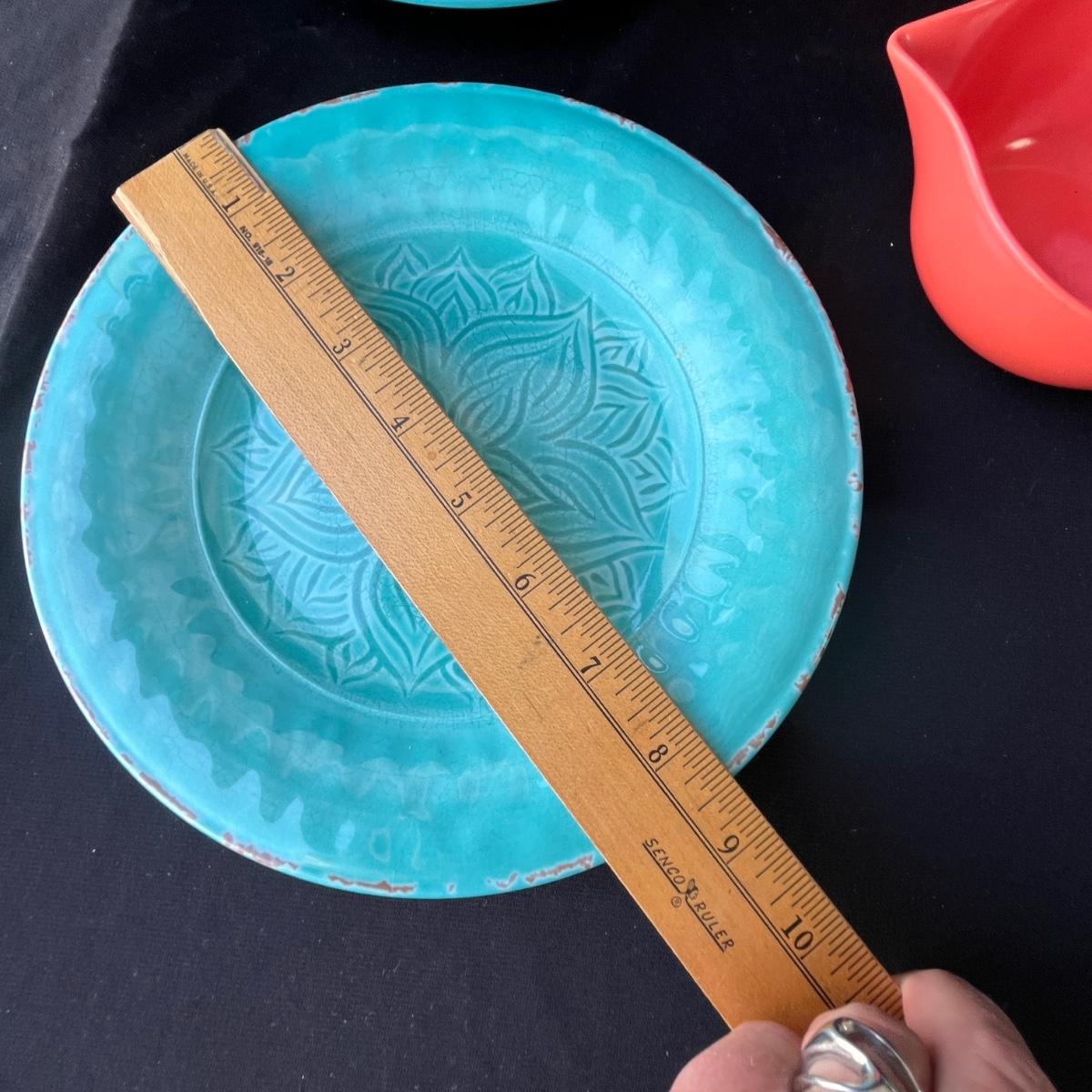8. Sizes are approximate, you can estimate as our lot number signs are 3.5" long. Also we use an 18" & 36" measuring stick.  We try on certain things to do actual measurements. No guarantees on actual sizes, we try our best!