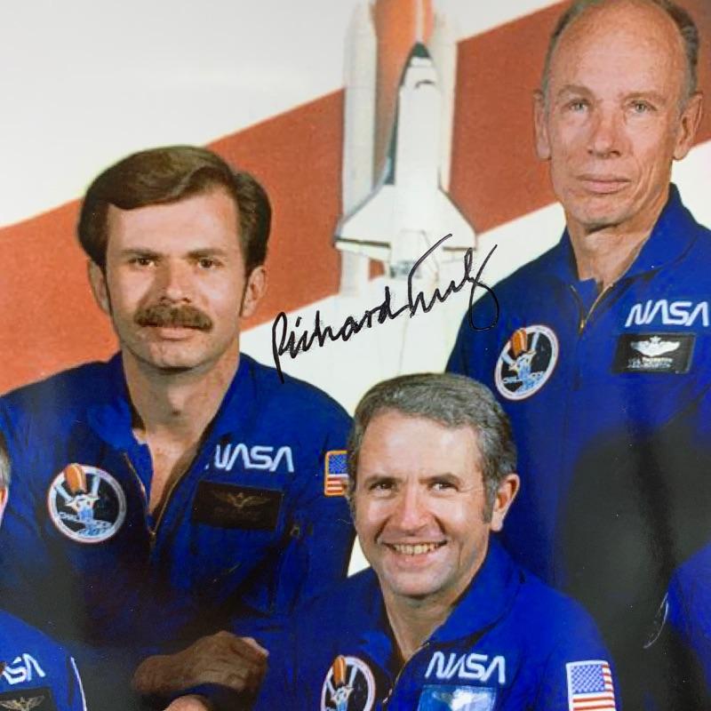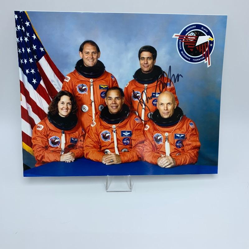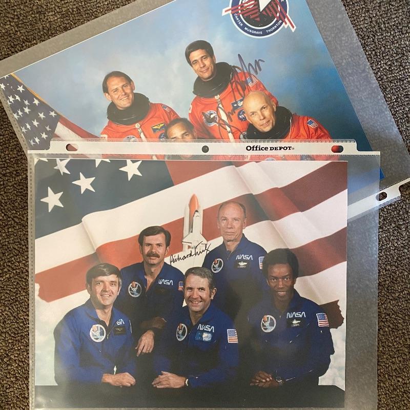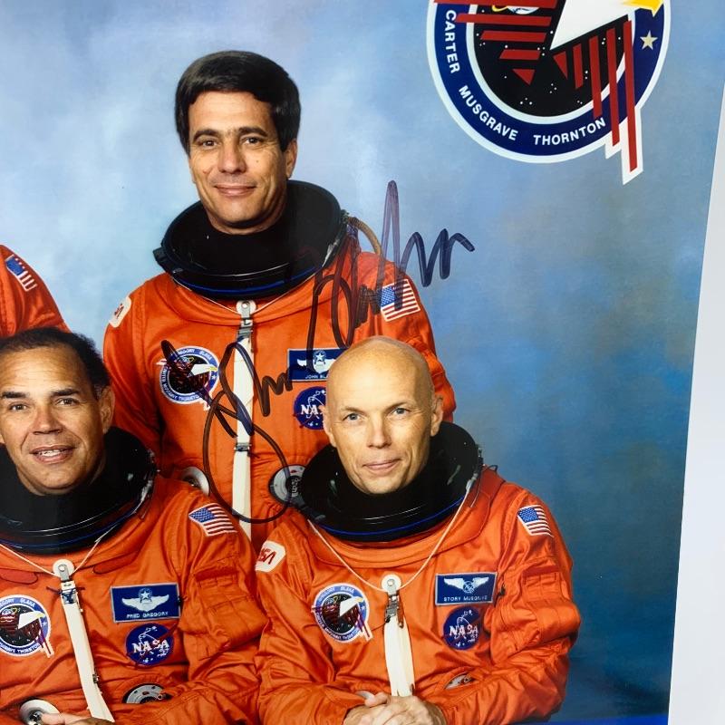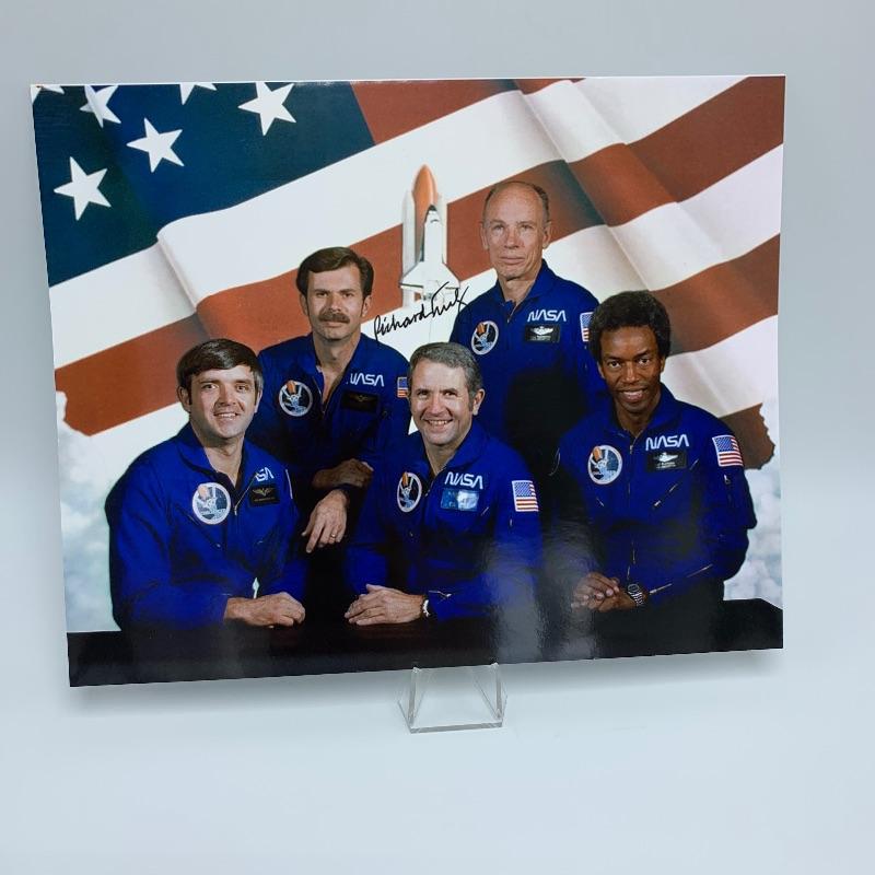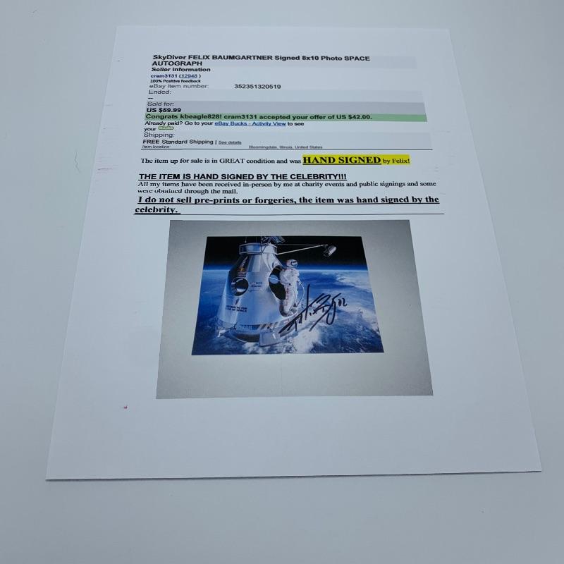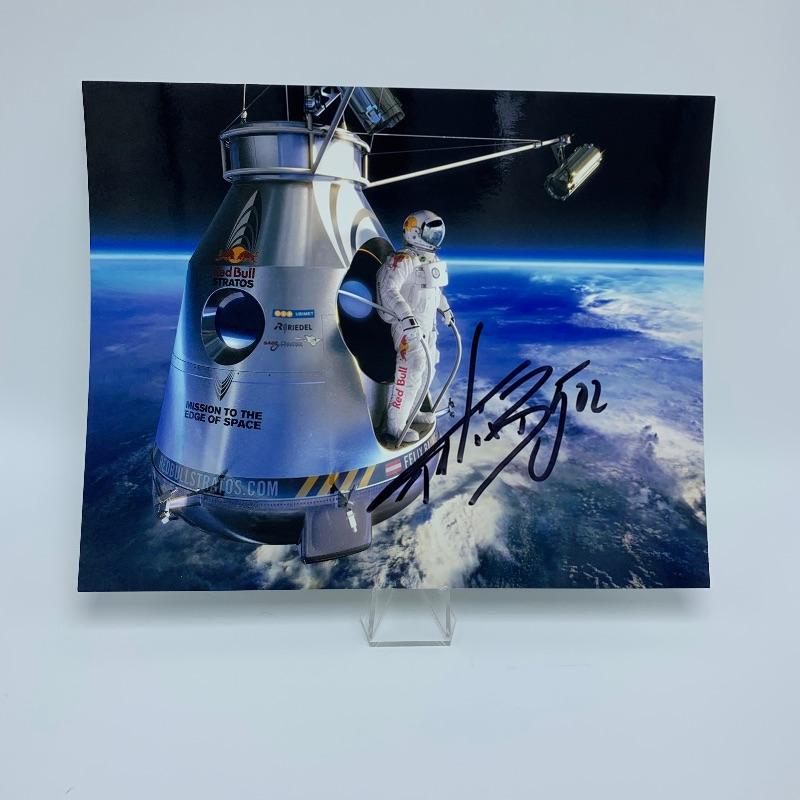 John Blaha and Richard Truly signed their crew photo for one of their space missions with NASA. Both photos come with COAs. This lot also includes SkyDiver, Felix Baumgartner's autograph. He is best known for jumping to Earth from a helium balloon from the stratosphere in 2012 as part of the Red Bull Stratos project.
