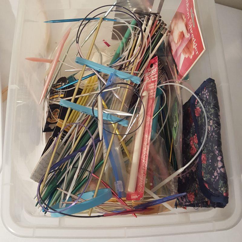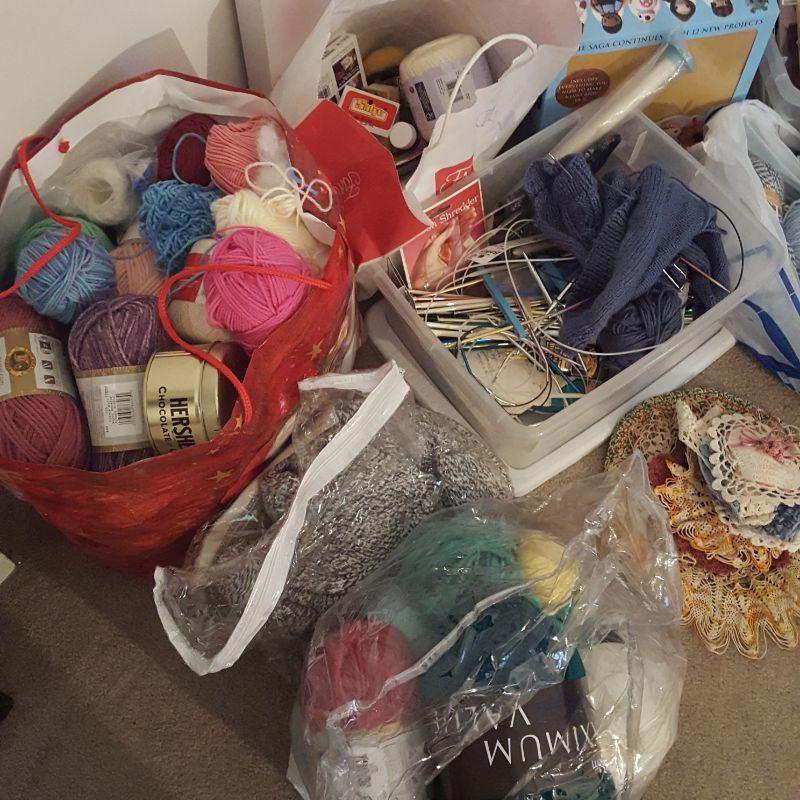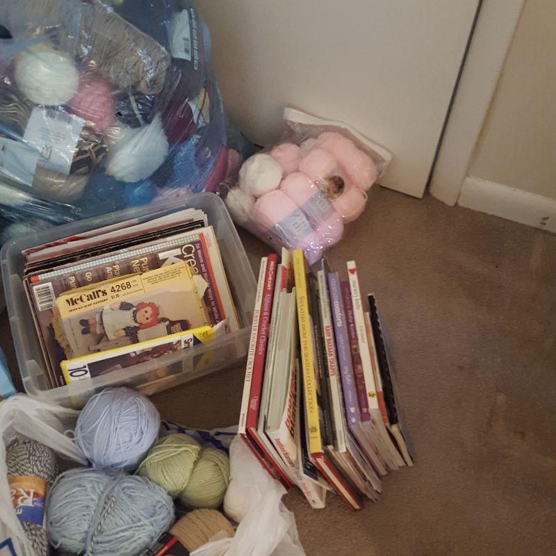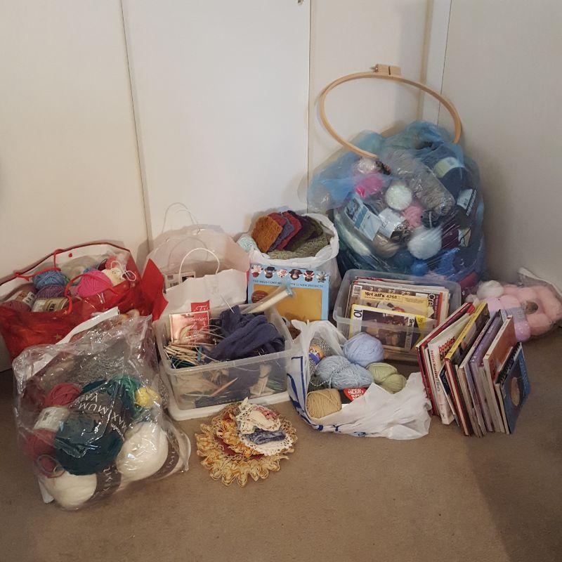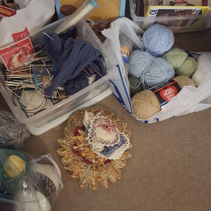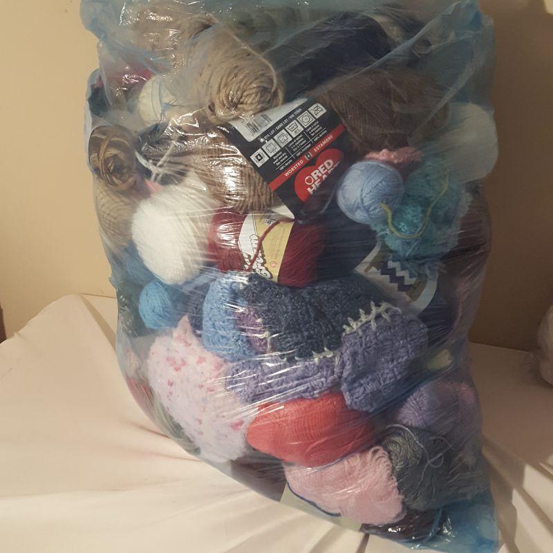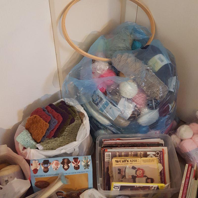 Wow! There is so much in this crafty lot! Bags and bags of yarn, some brand new, others are left over balls of yarn. A whole box of knitting and crocheting needles. There is also books, patterns and a stack of doilies already completed. There is a whole bag of finished squares that could be put together for a blanket. There are some knitting projects already started, they just need your finishing touches! See pictures for more details. Local pick up only.