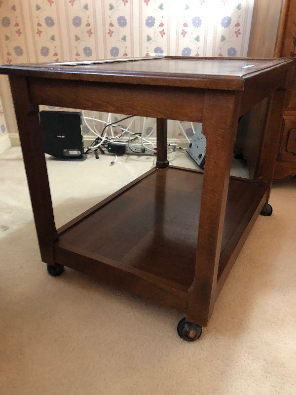 Lot 34 - Rolling 2 Tier Wood TV Stand