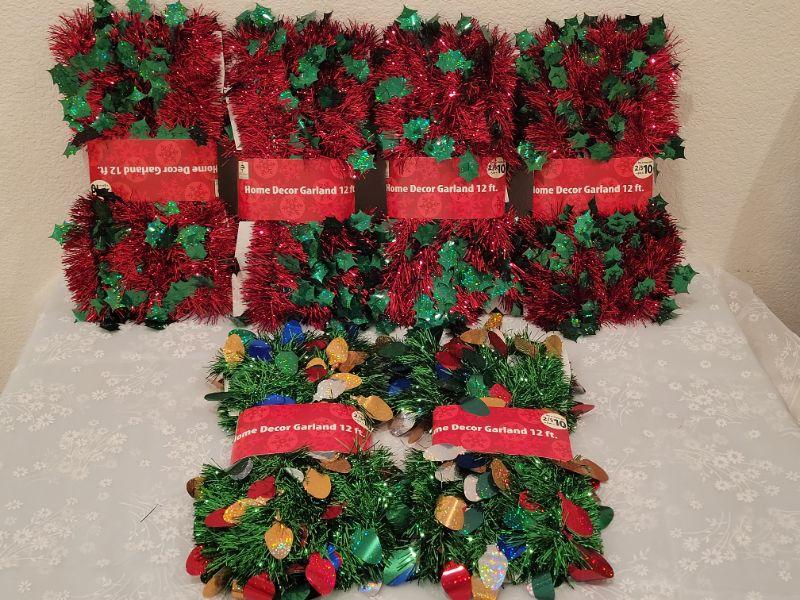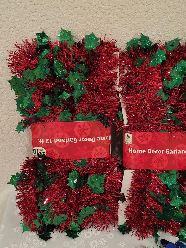 Lot 34: New Holiday Garland - (Red & Green Holly and Green & Multicolored Christmas Light)