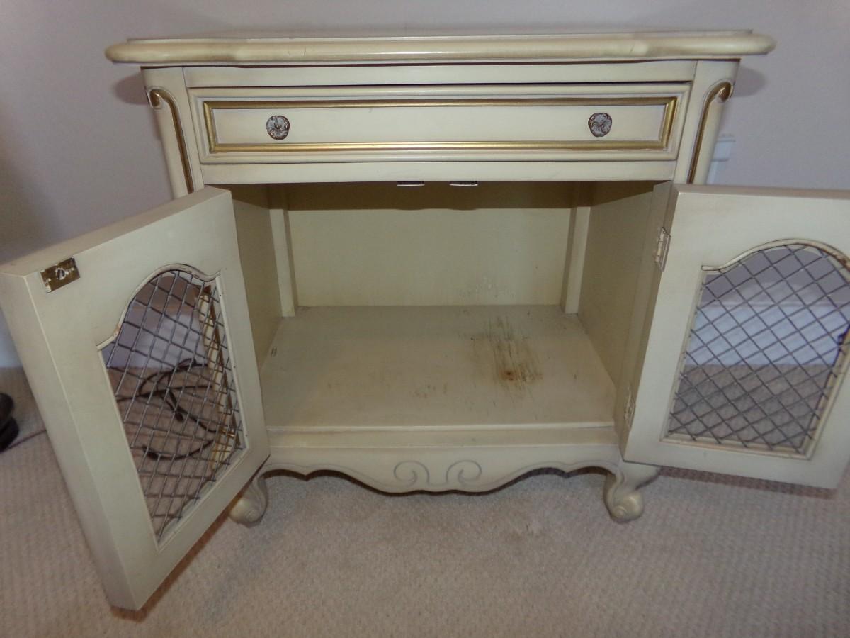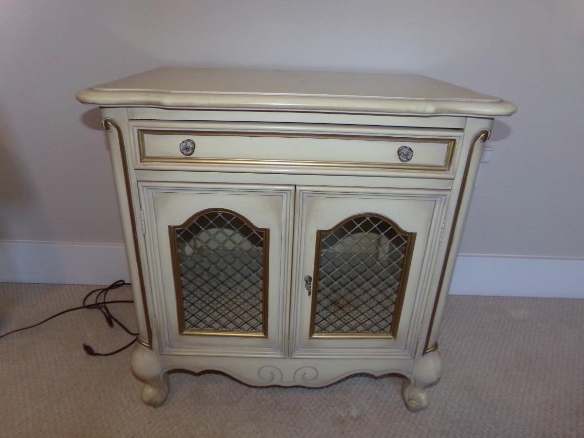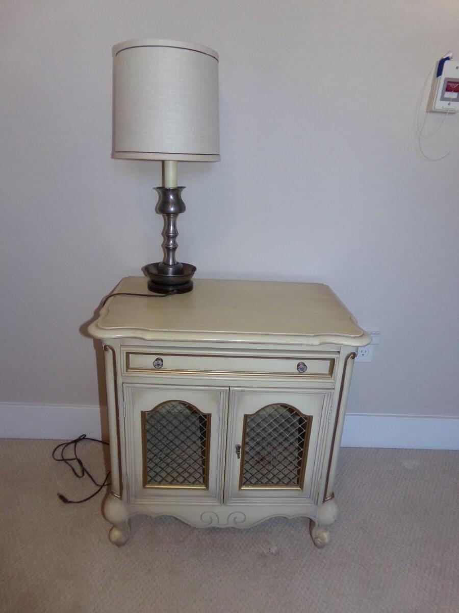 LOT 34 NIGHTSTAND AND CHROME BASE TABLE LAMP