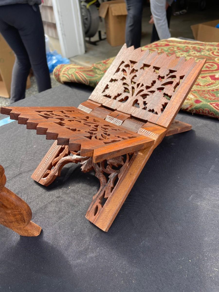 - wood carved Koran, or book holder/ book display