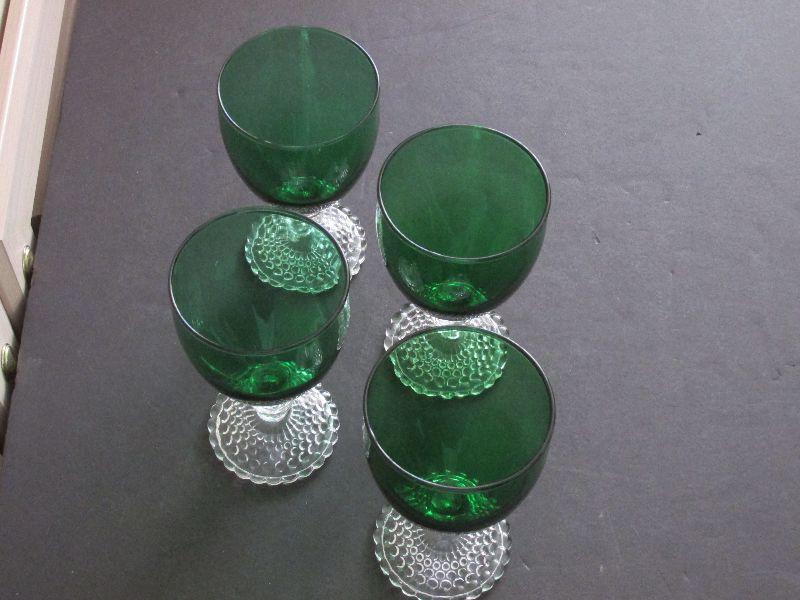 Lot 34- Anchor Hocking Bubble Foot Green Water Goblets