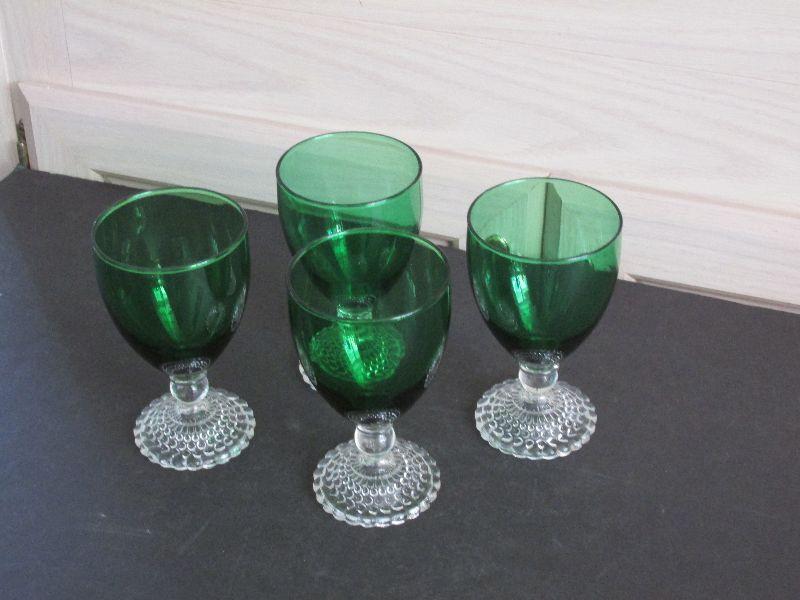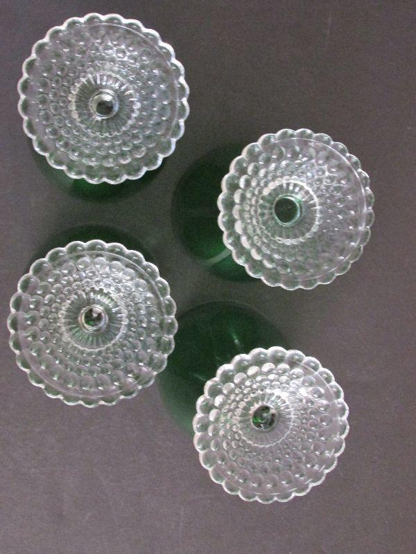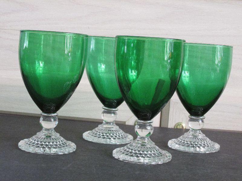 Set of 4 Anchor Hocking Bubble Foot Green Water Goblets. Height: 5 5/8" Width: 3 1/8". No chips or cracks.