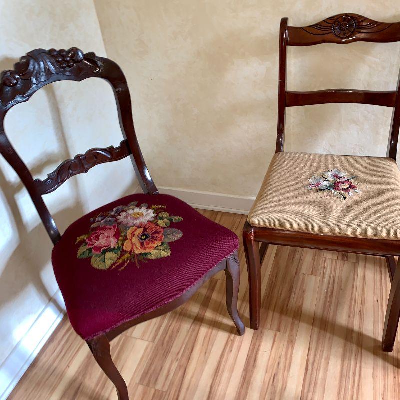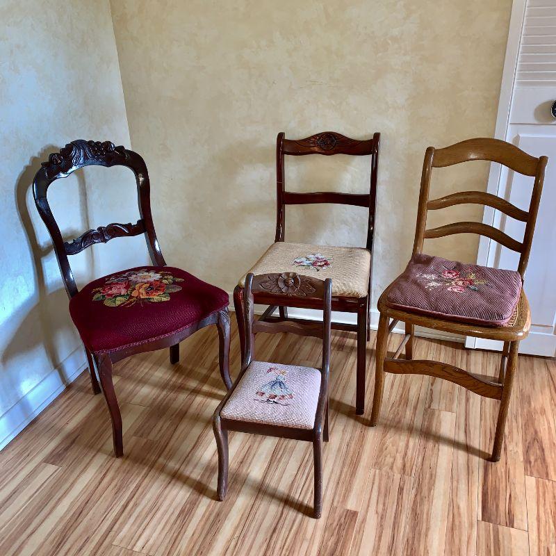 LOT 34 GROUP OF ANTIQUE SINGLE CHAIRS NEEDLEPOINT