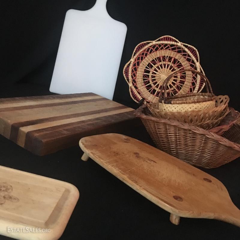 Lot 34 - Baskets, Cutting Boards and Trivits