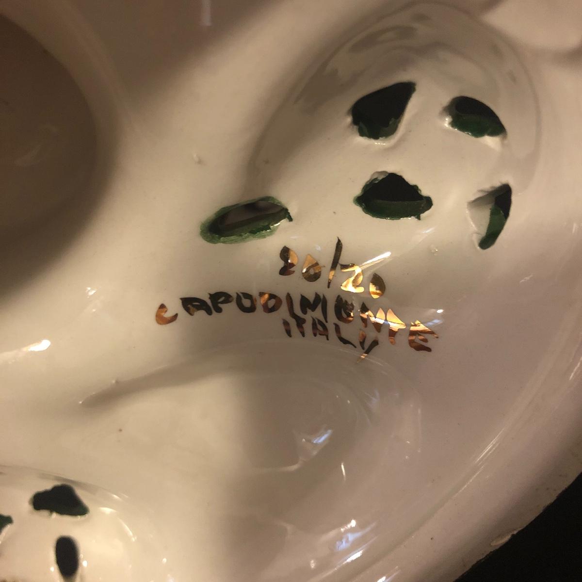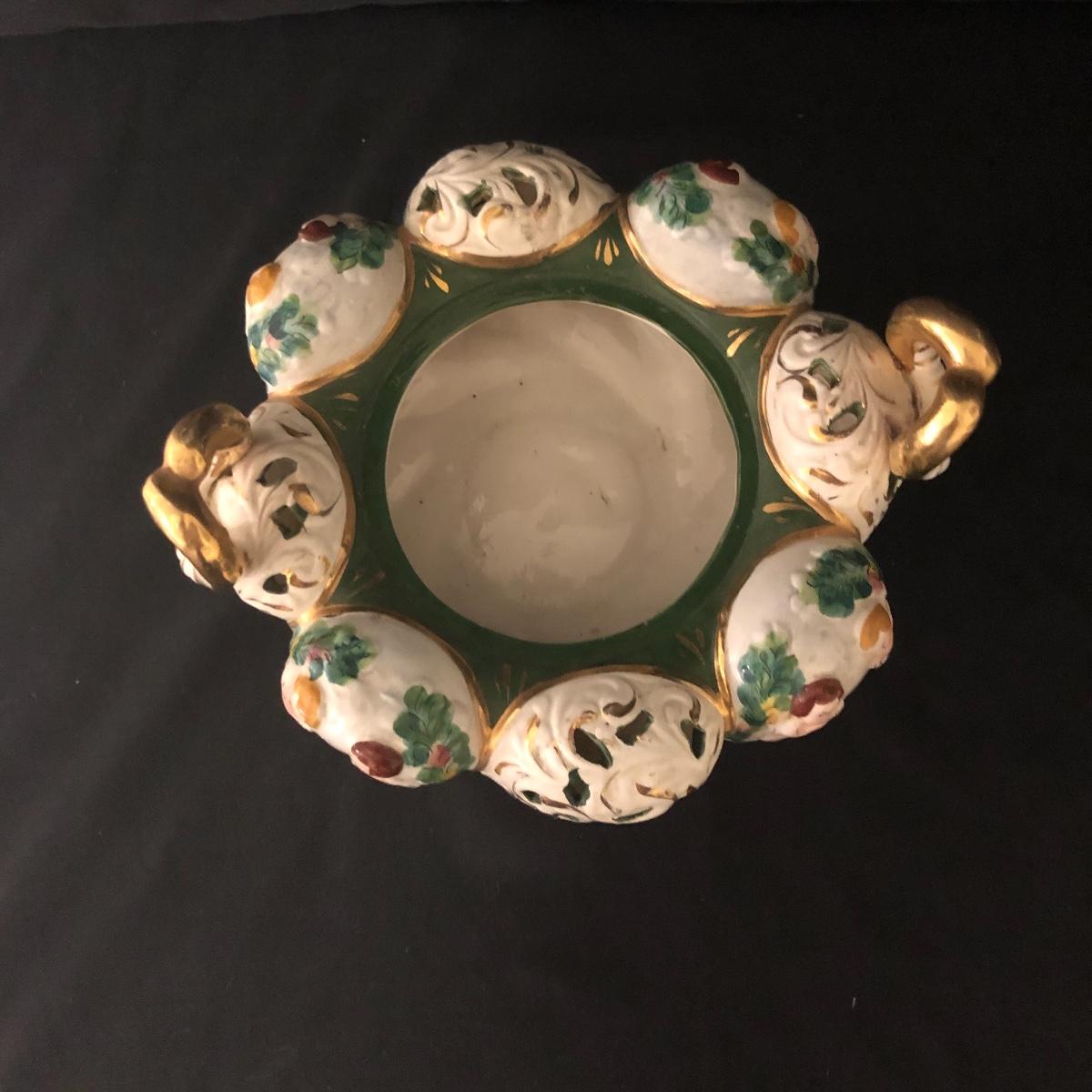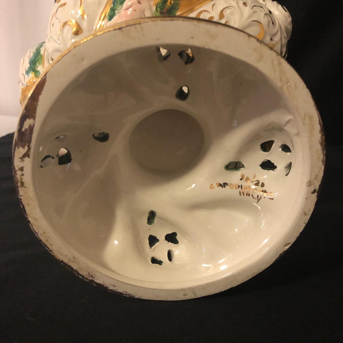 This Capodimonte lidded pedestal dish is signed on the bottom. It is a spectacular conversation piece that has a with a cherub design and is a great piece for your home and to stash your candy. Piece measures 9”D x 9.5” tall.