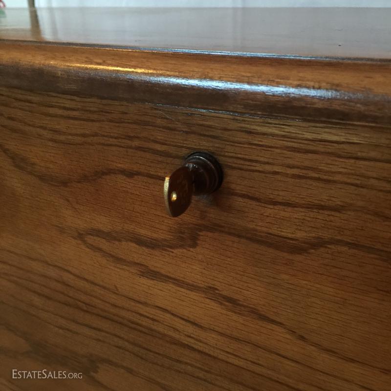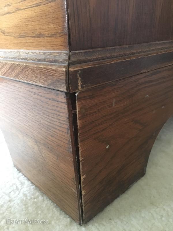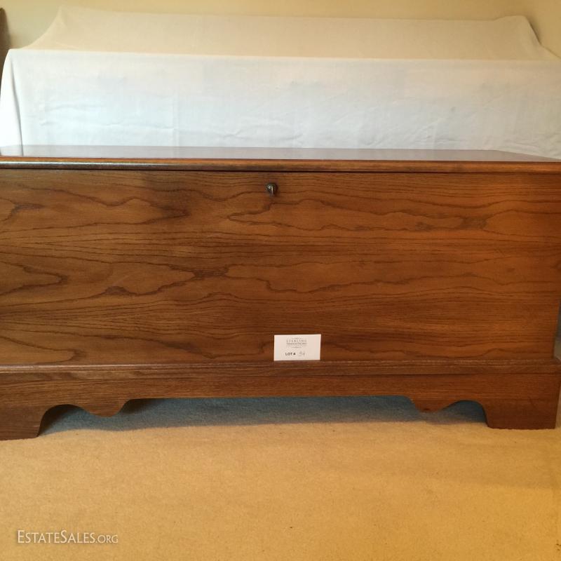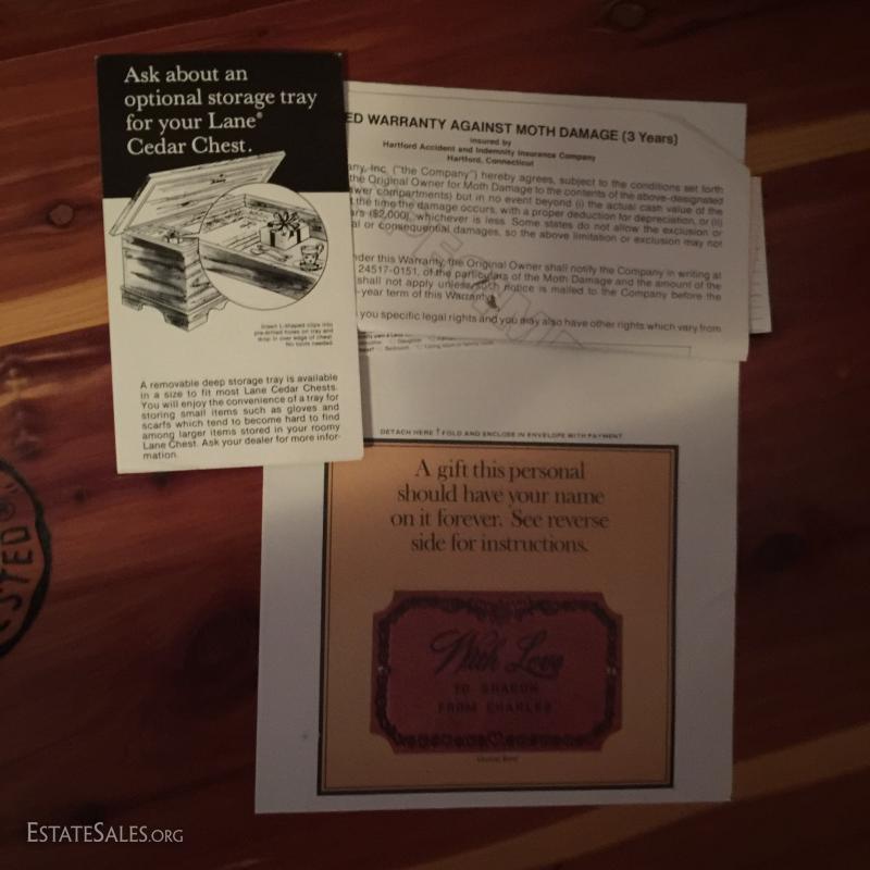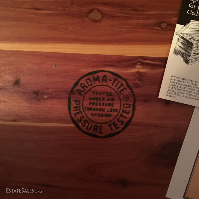 Lane Chest 47" L x 17" W x 22" H (38" H with lid open). Please note there is some damage to the right front base.