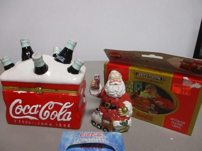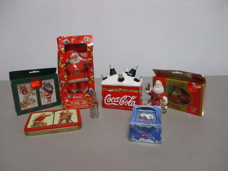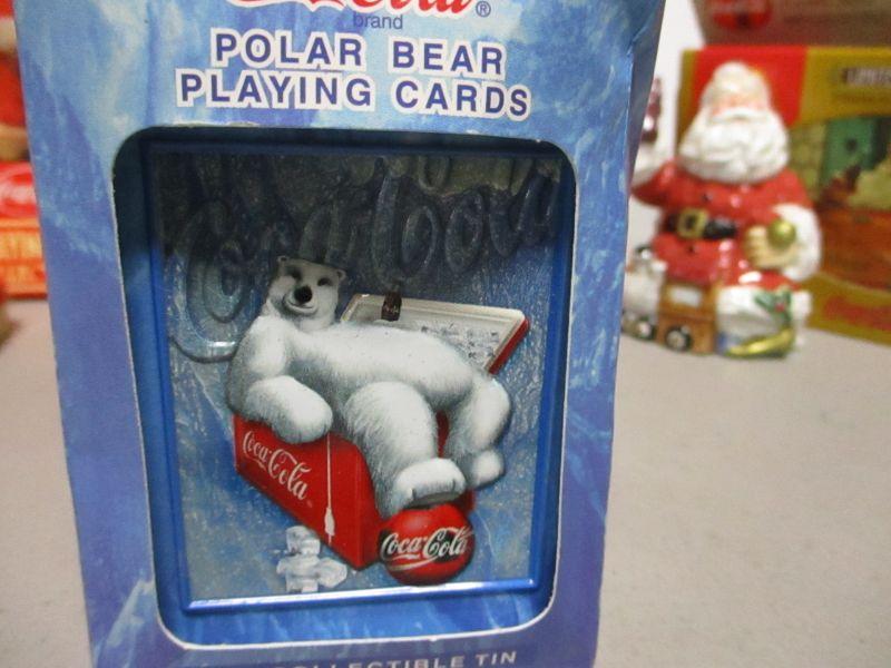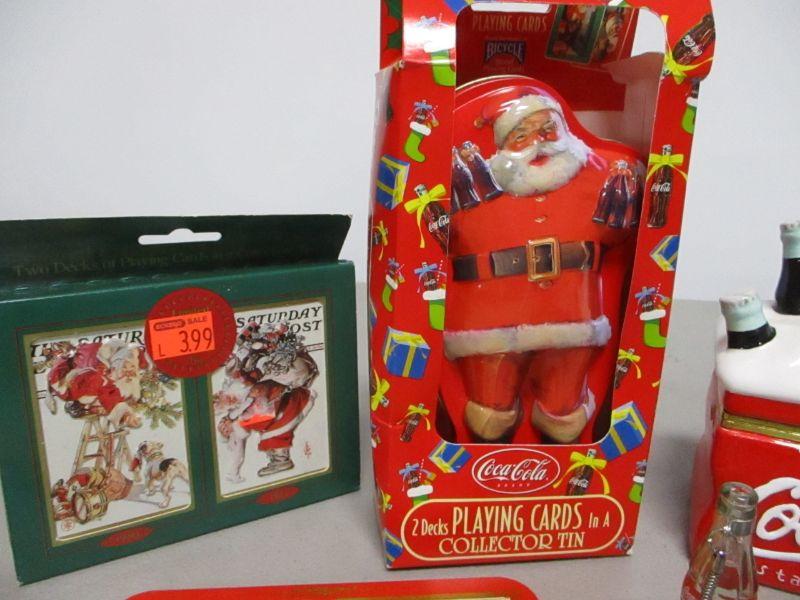 Santa's bottle broken & ceramic container paint is missing, but cards appear to be in good condition