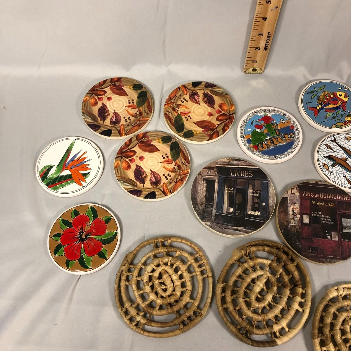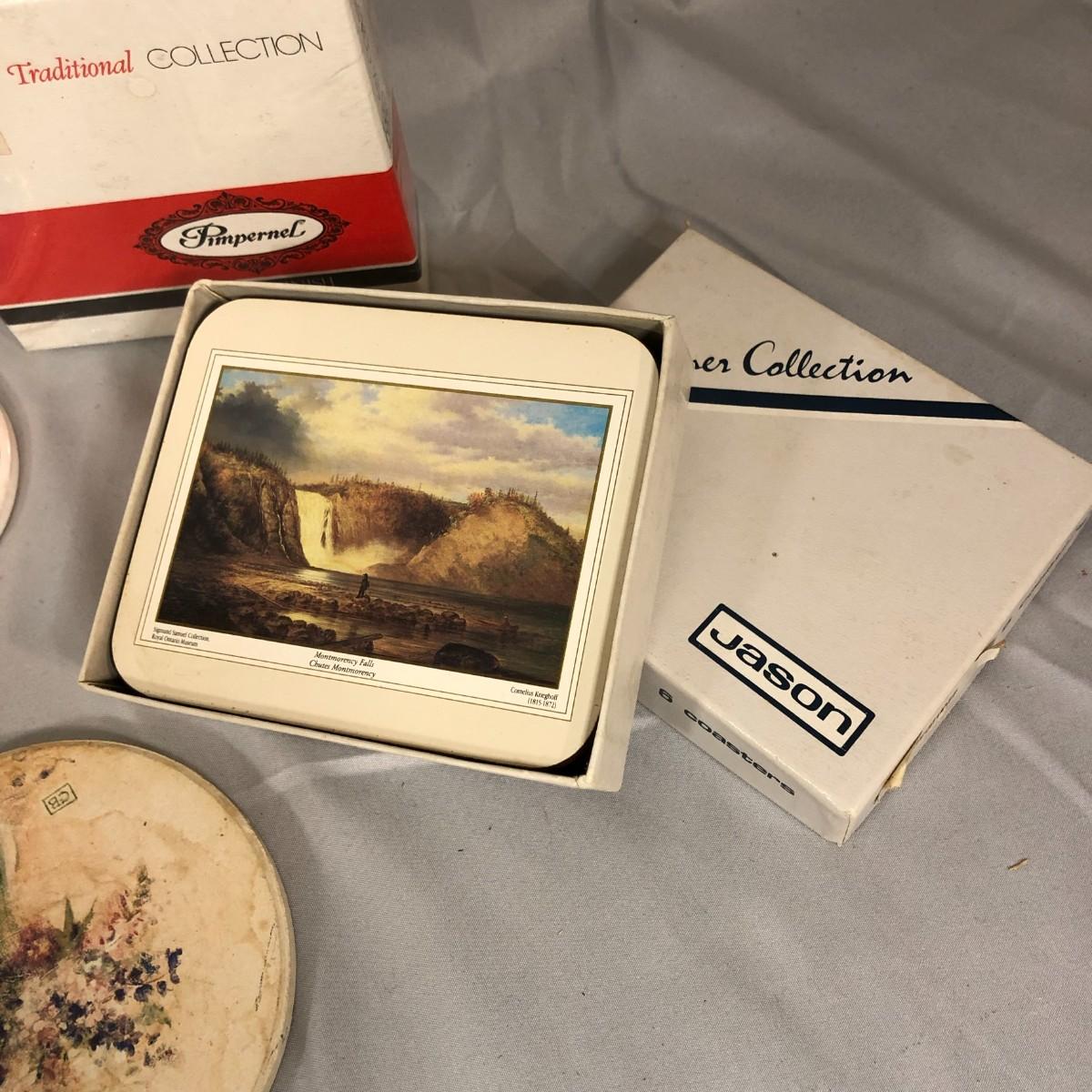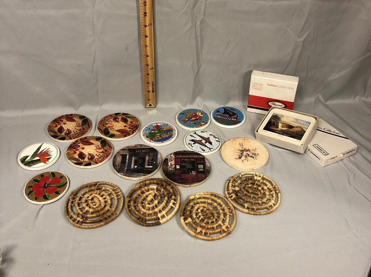 With these, no one visiting you has an excuse not to have a coaster! They are all in great shape (one needs to be cleaned) and made of a variety of materials. The one box hasn't been unsealed yet. If you don't need coasters, use them for lawn frisbee or skeet shooting. Once you buy it, do with it what you will!
