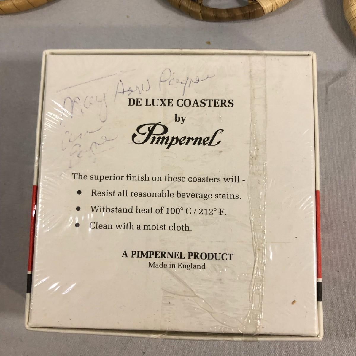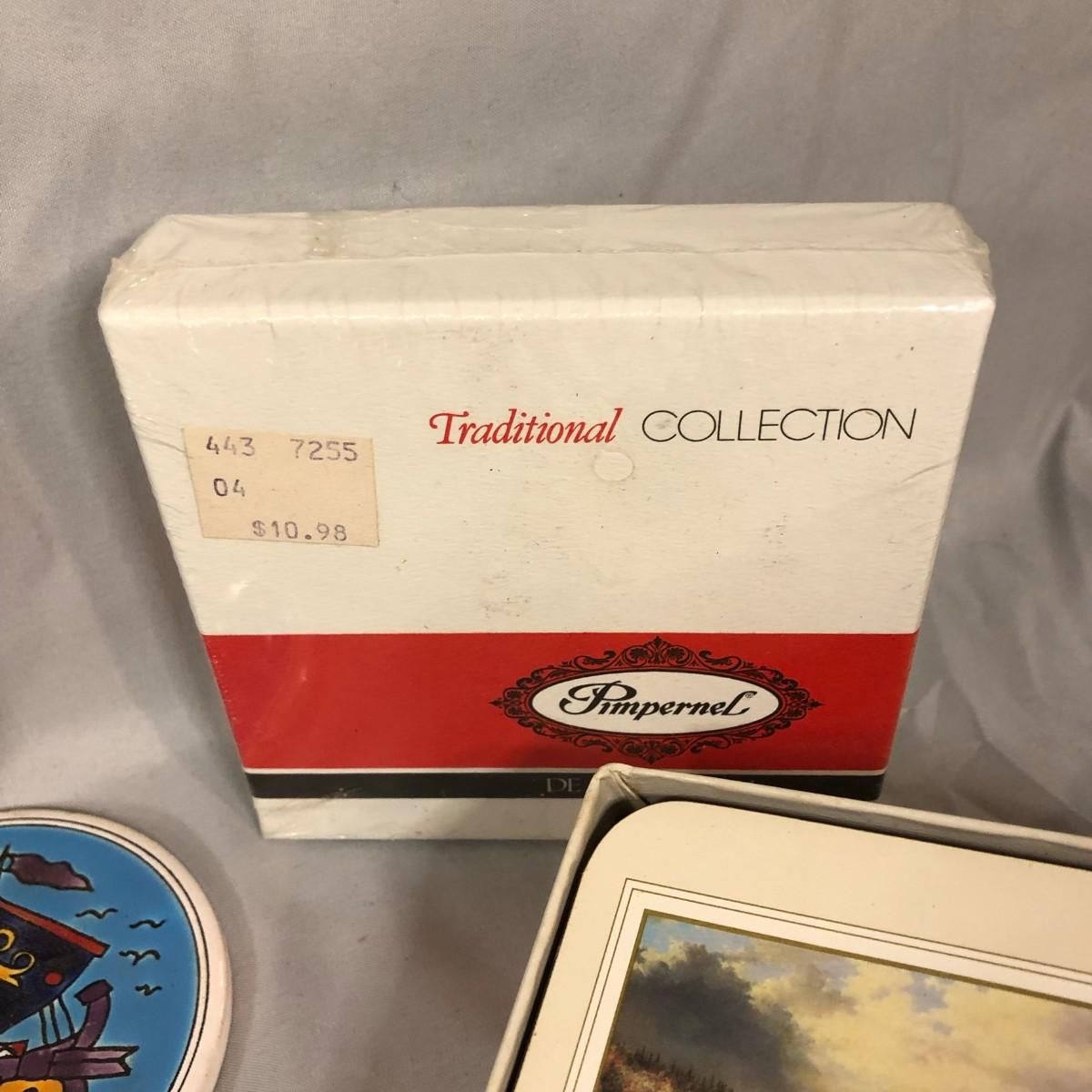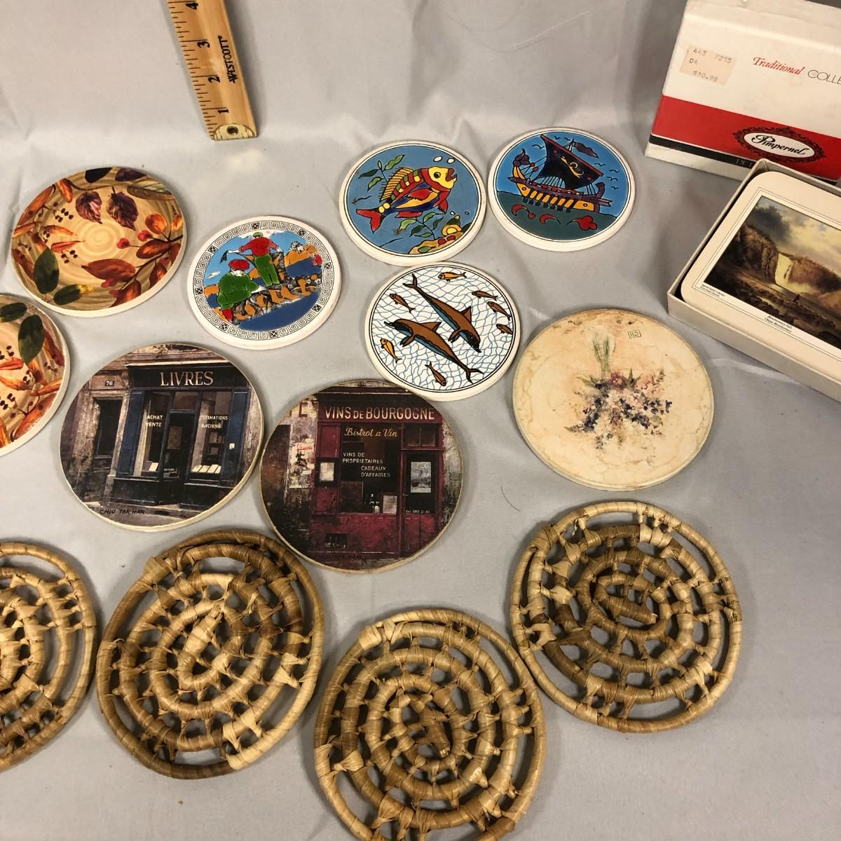 With these, no one visiting you has an excuse not to have a coaster! They are all in great shape (one needs to be cleaned) and made of a variety of materials. The one box hasn't been unsealed yet. If you don't need coasters, use them for lawn frisbee or skeet shooting. Once you buy it, do with it what you will!
