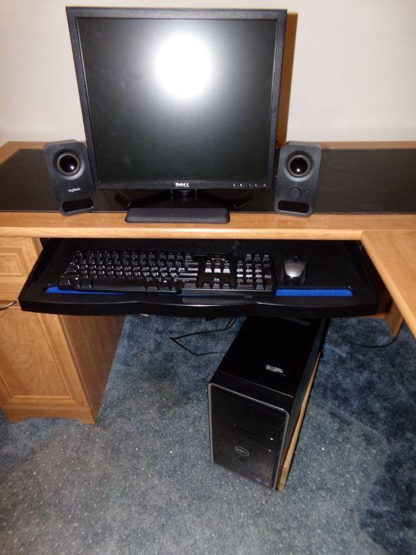 EVERYTHING YOU NEED! DELL TOWER W/WIN 7, HEIGHT ADJUSTABLE MONITOR, KEYBOARD, WIRELESS MOUSE AND SPEAKERS