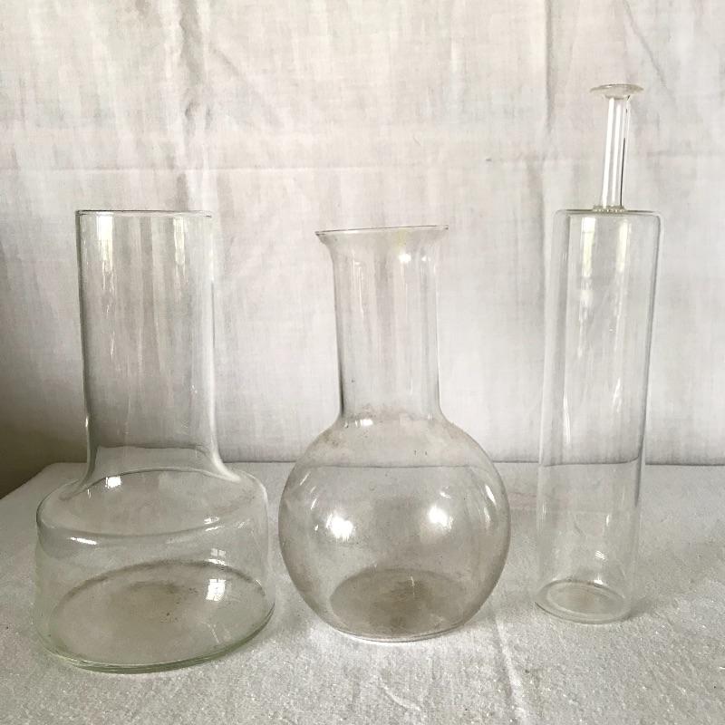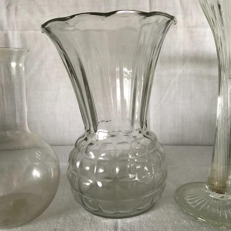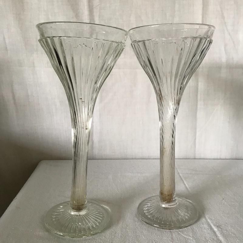 Some unique finds with this assortment of fun shaped glass vases, one with a green metal case and a marble bud vase thrown in the mix. The swirled tall pair of vases have a 5” diameter mouth and stand a foot tall. See photos. Local Pickup Only.