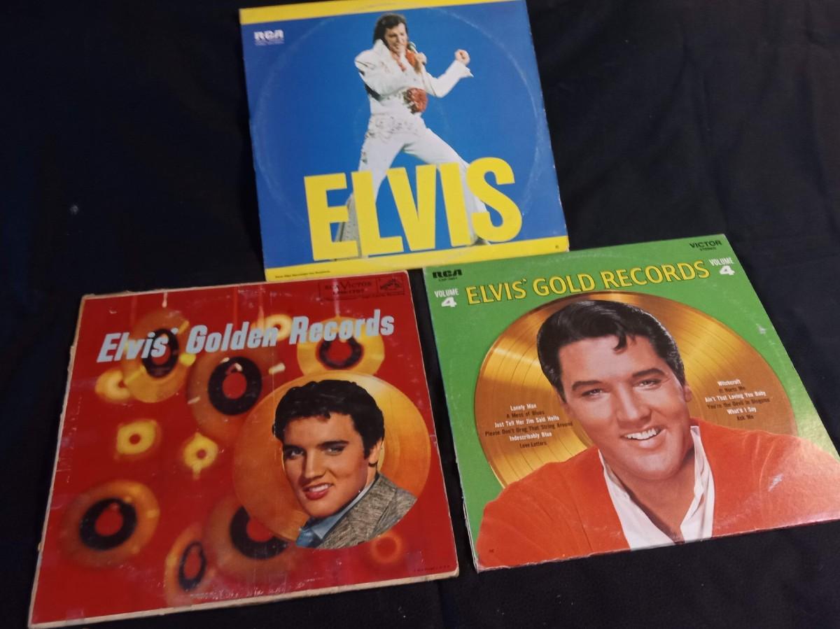 THE ELVIS GOLDEN RECORDS HAS CONSIDERABLE WEAR THE OTHER 2 HAVE LIGHT WEAR