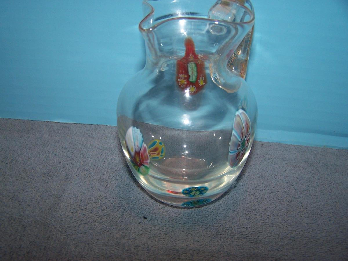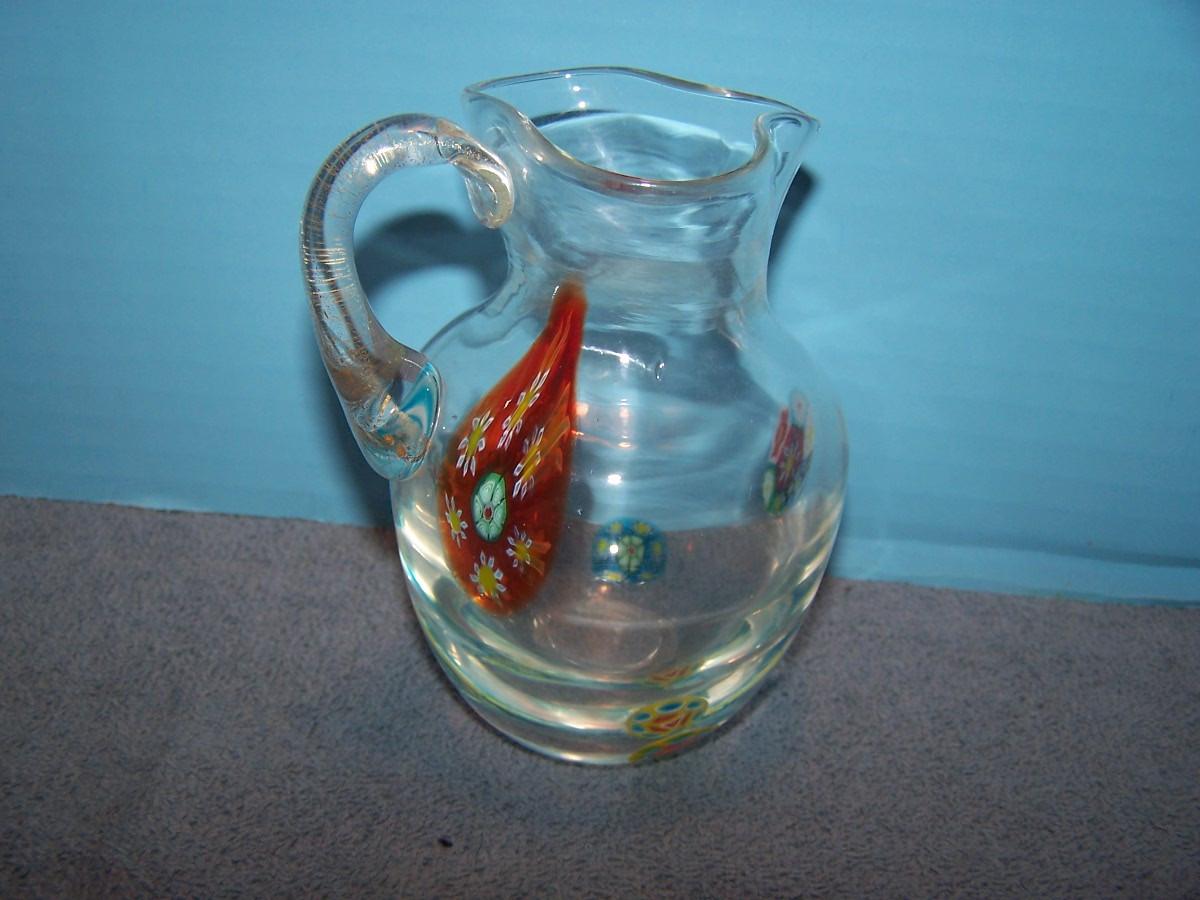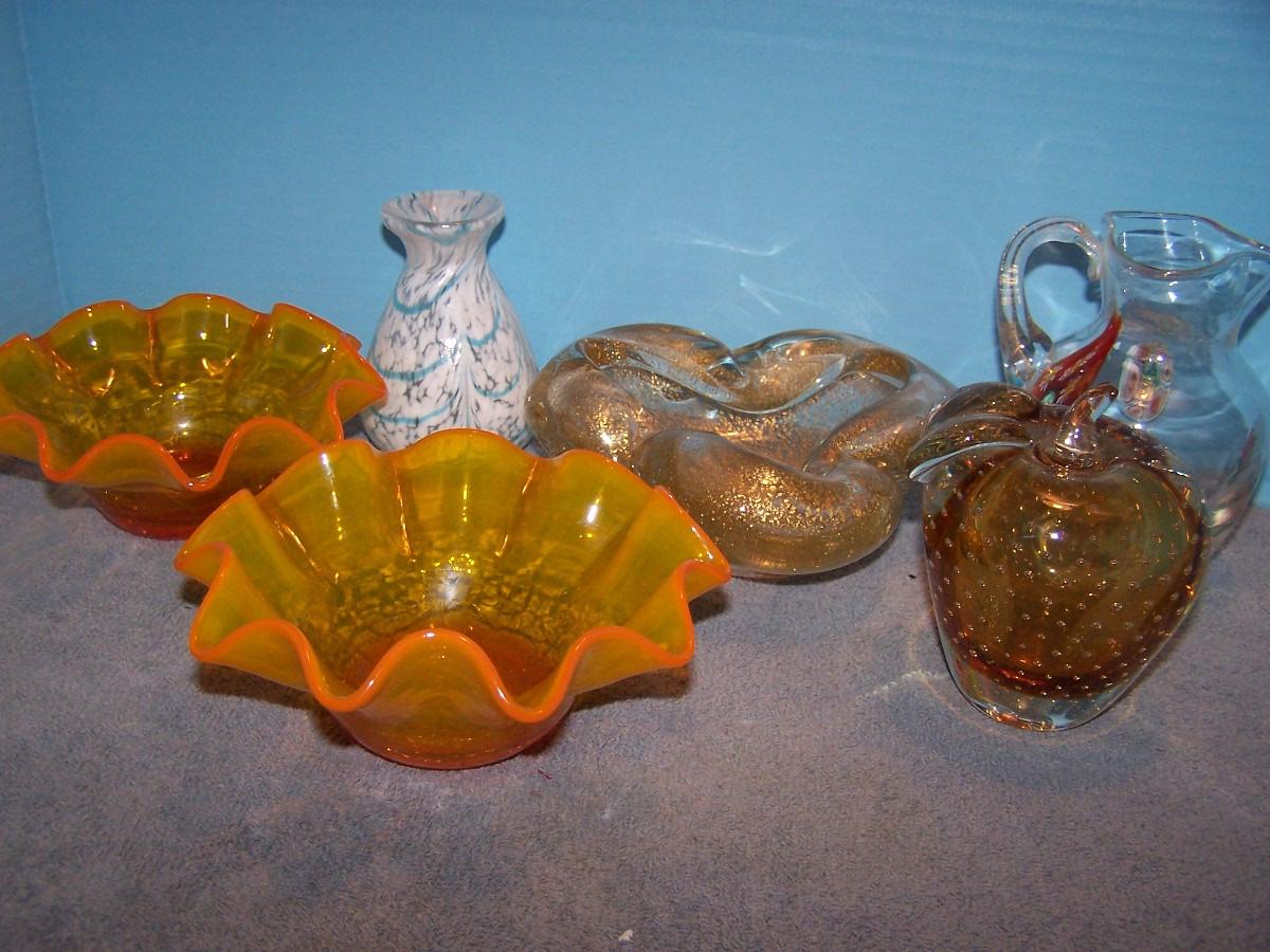 THIS IS A WONDERFUL COLLECTION OF GORGEOUS COLLECTIBLE ART GLASS!!! THE PITCHER IS MARKED-MURANO,, AND IS 4 3/4'' TALL... OTHERWISE, NO MARKINGS... LIGHT WEAR...