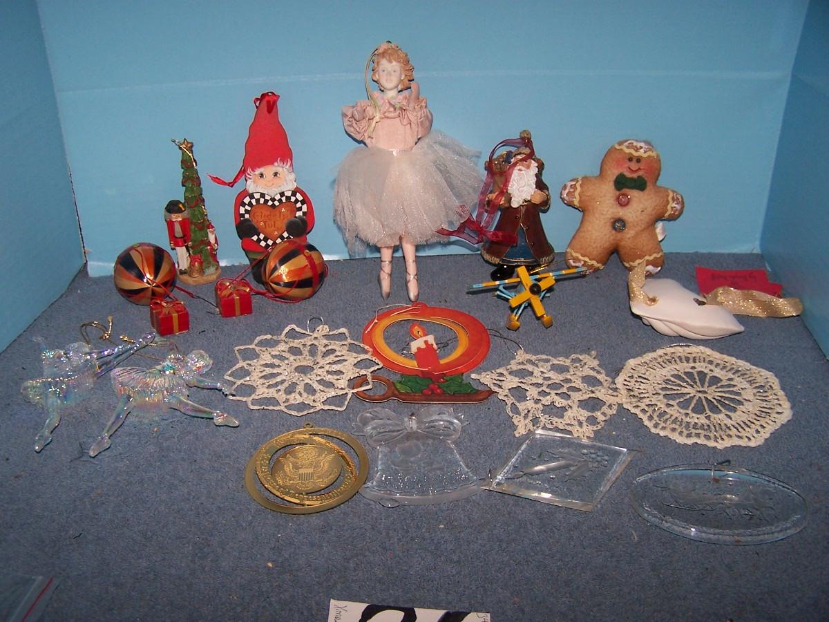 THESE ARE GREAT COLLECTABLE ORNAMENTS! VARIOUS MATERIALS. LIGHT WEAR..
