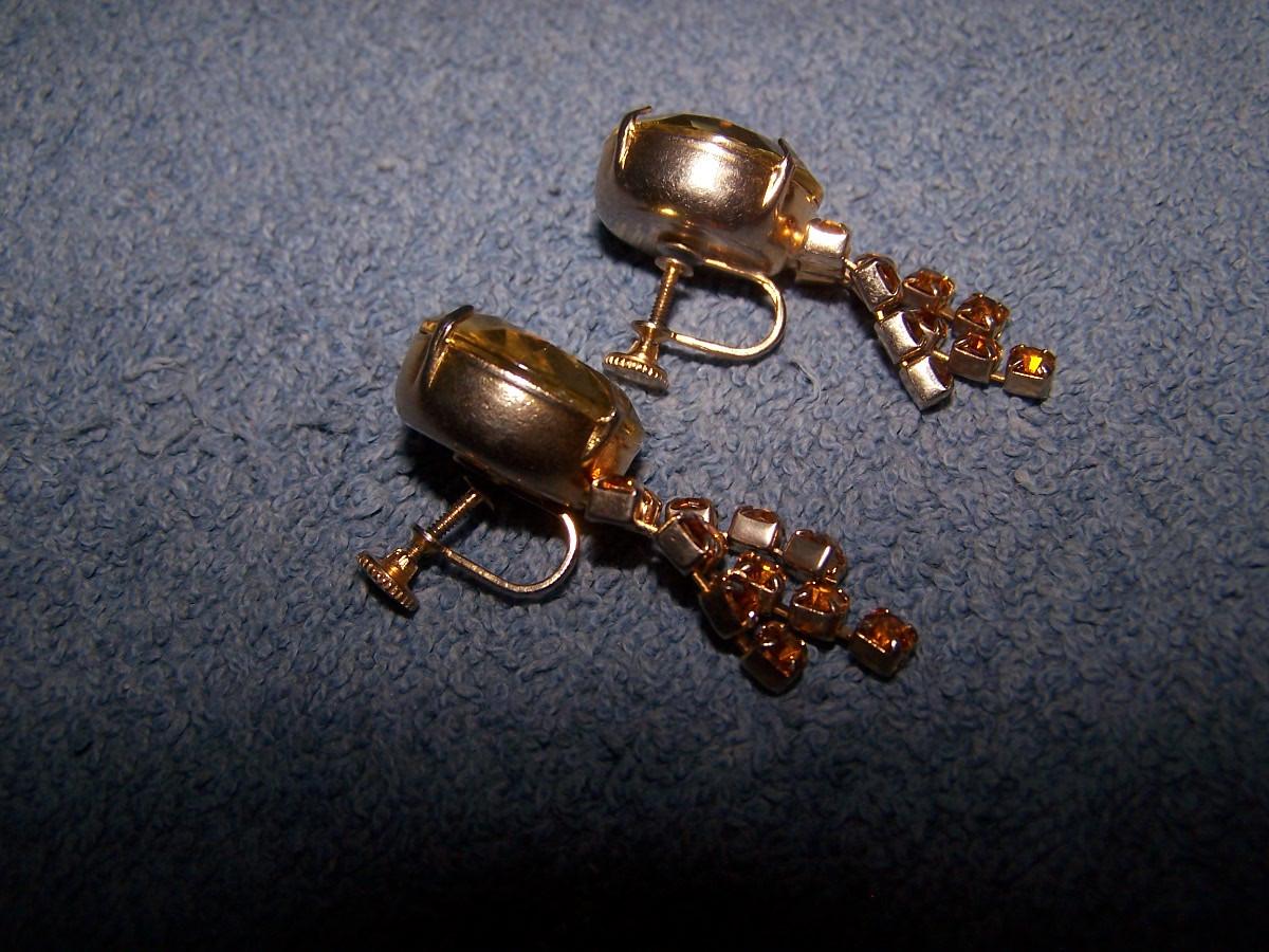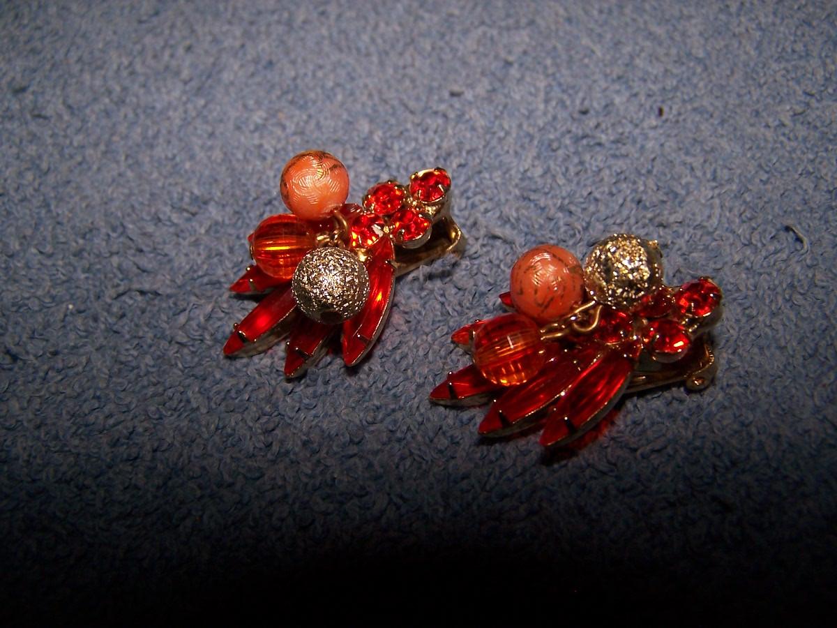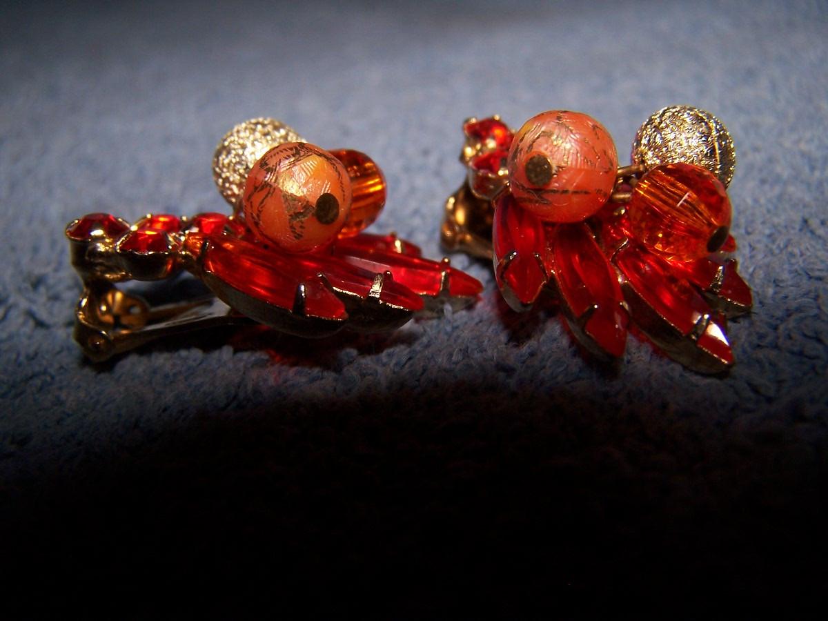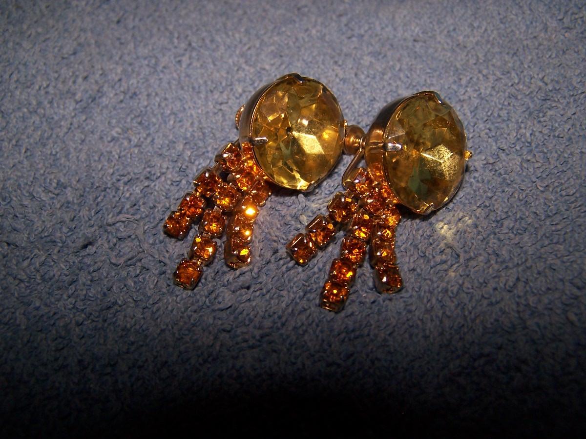 THESE ARE SOME GREAT VINTAGE EARRINGS!!! UNMARKED.. ORANGE-1 1/4''.. SOME MIGHT MISSING STONES, OTHERWISE, LIGHT WEAR..