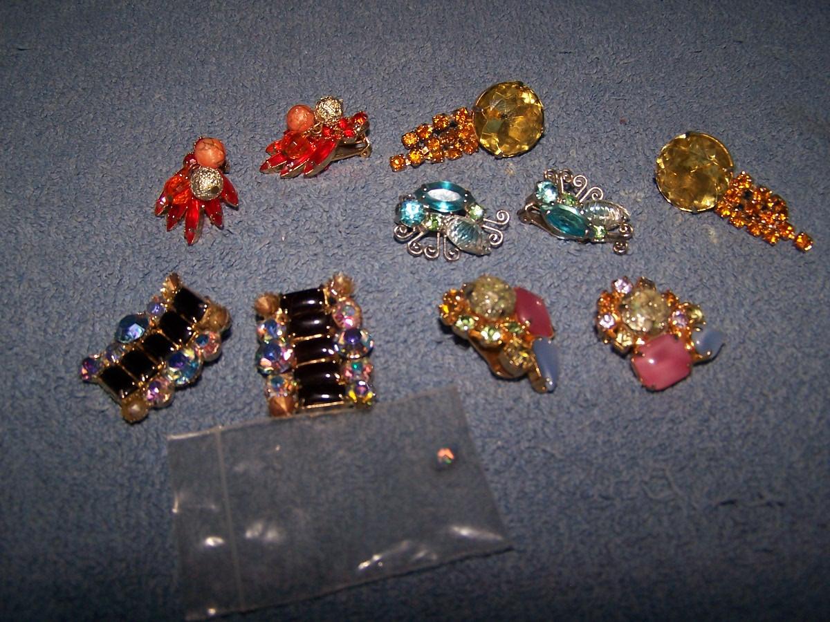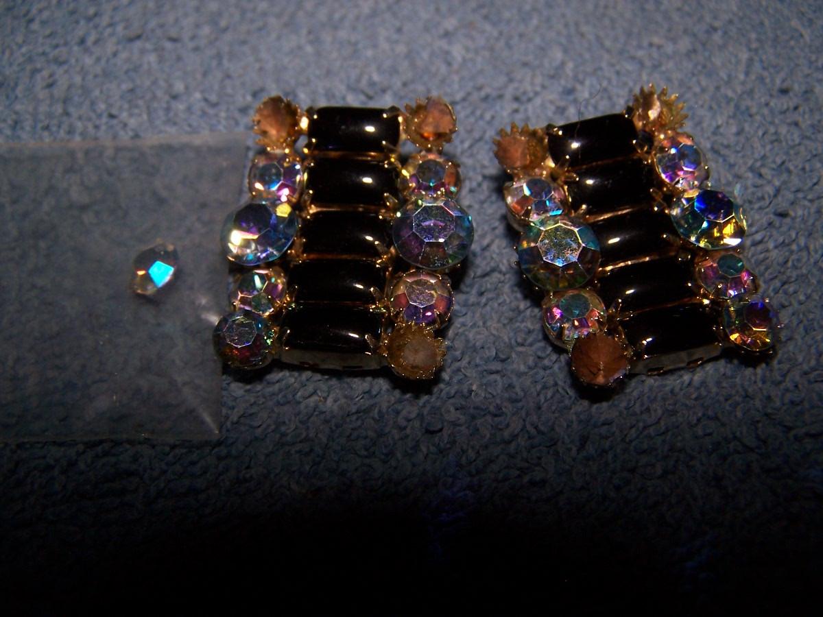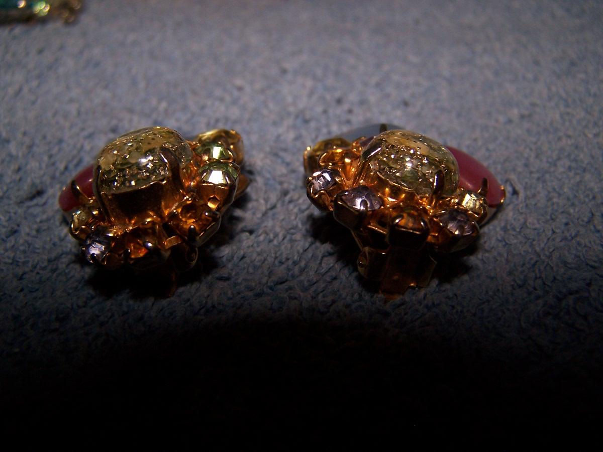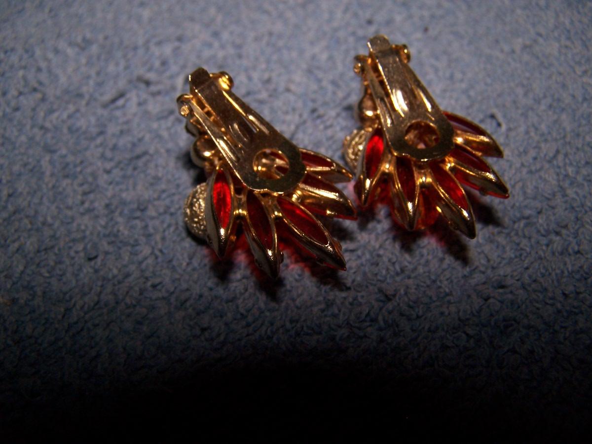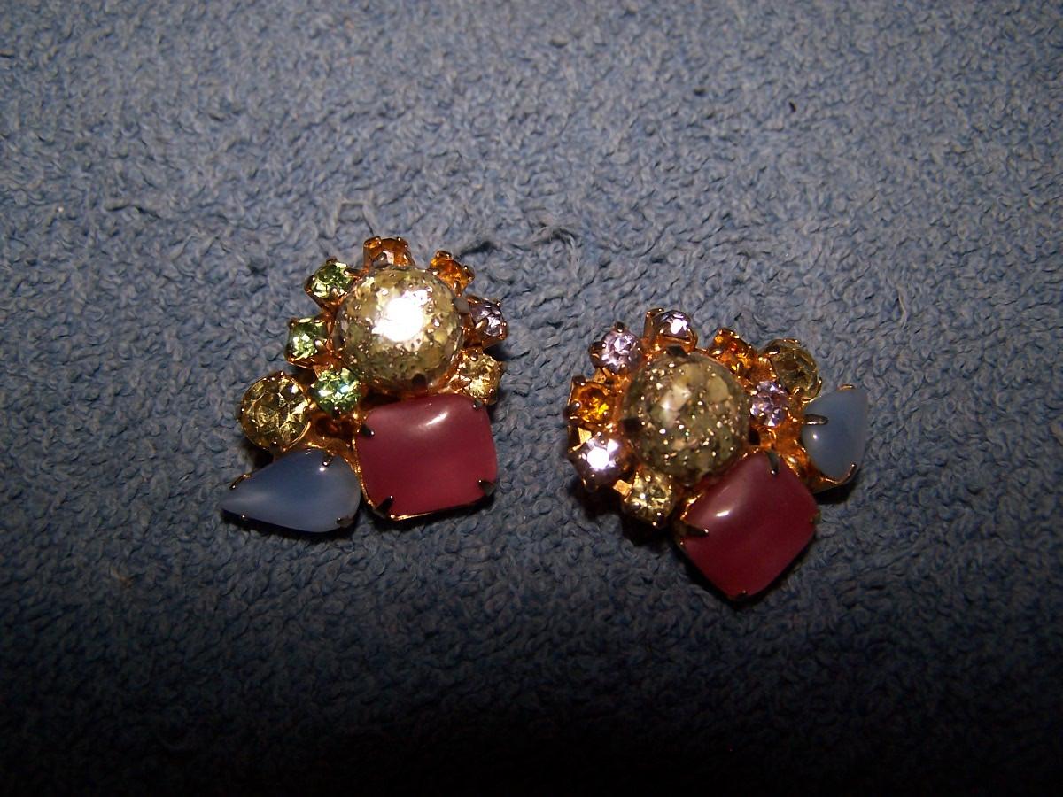THESE ARE SOME GREAT VINTAGE EARRINGS!!! UNMARKED.. ORANGE-1 1/4''.. SOME MIGHT MISSING STONES, OTHERWISE, LIGHT WEAR..