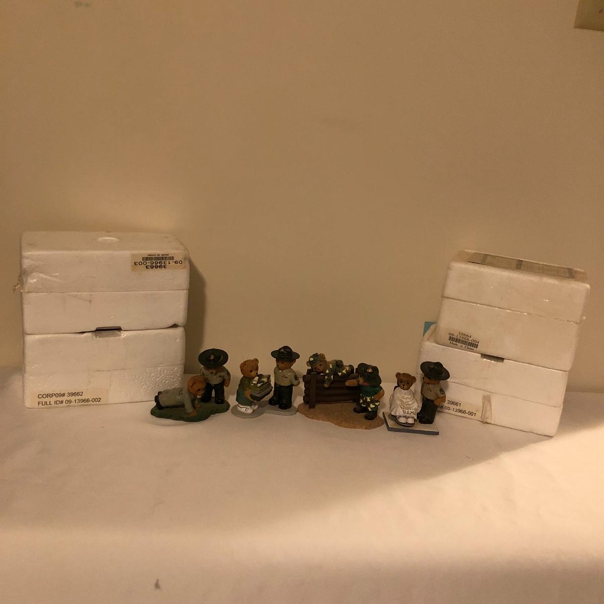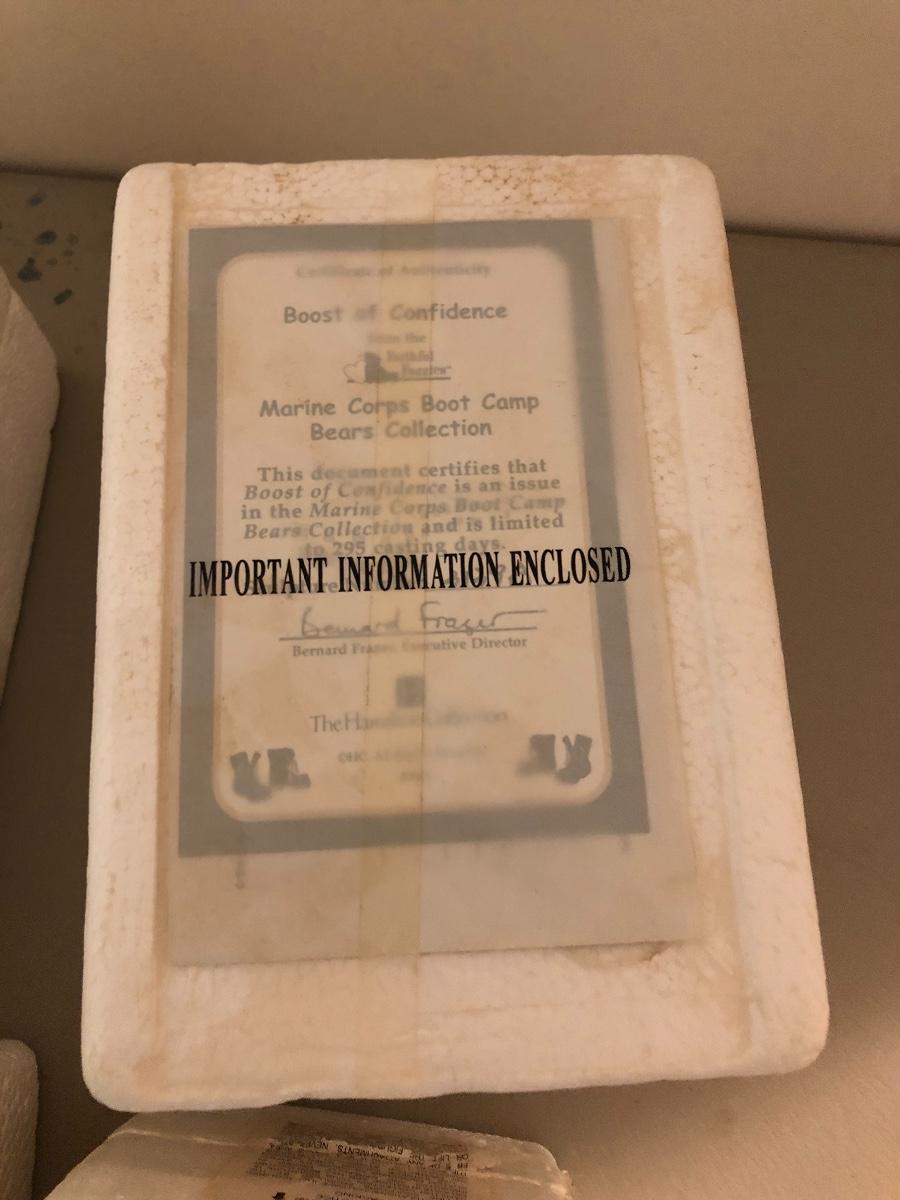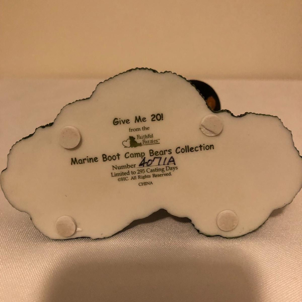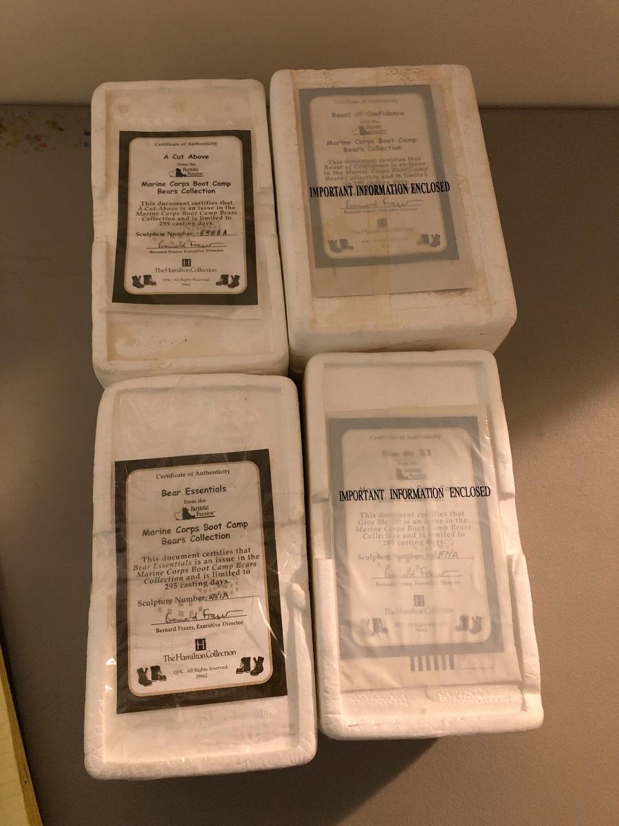 A great gift for the Marine in your life. Lot includes four Hamilton Collection Marine Corp bears. Bears are titled “Boost of Confidence, Give me 20, A Cut Above” and one is untitled. All pieces are numbered and all 4 come with COA’s, see images. Largest piece measures 3.5” x 5” x 4”.
