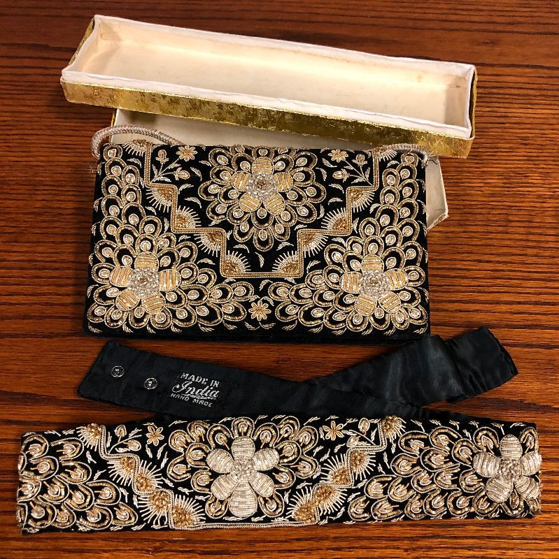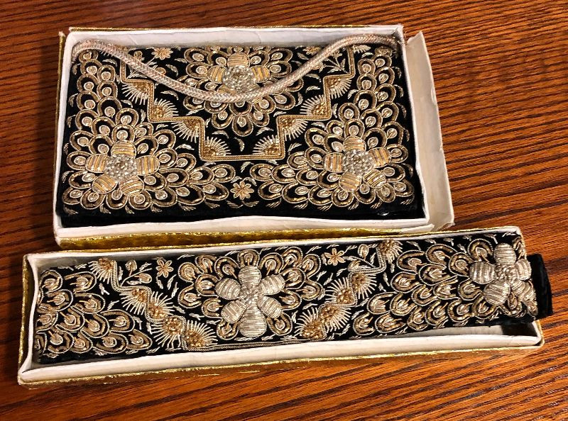 Lot 34 Hand made gold and Silver Embroidered Belt and Purse