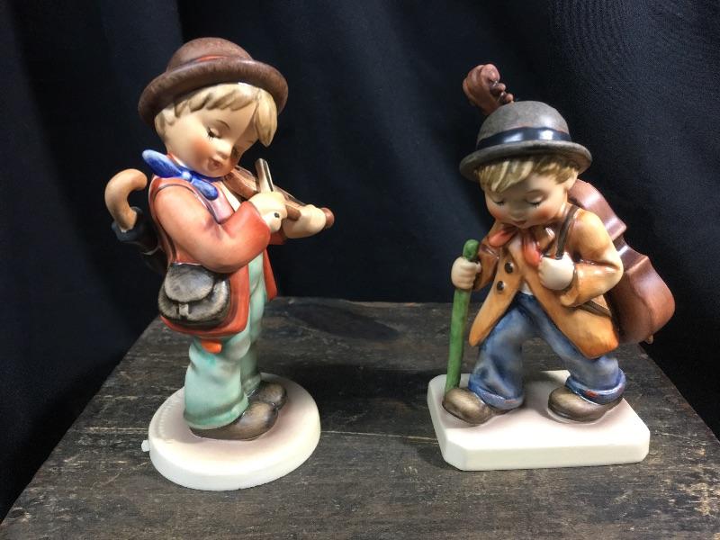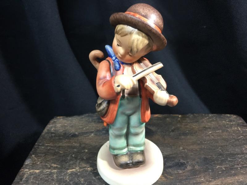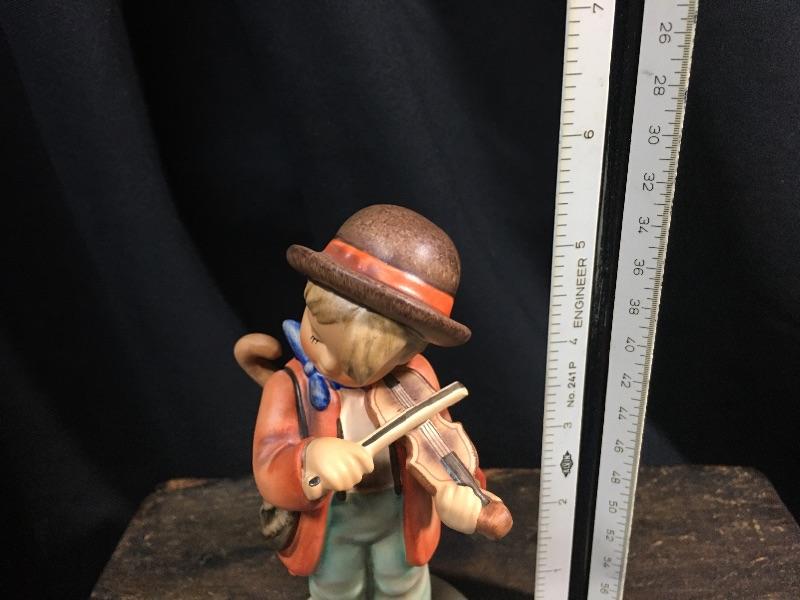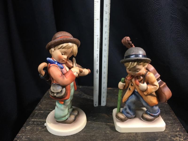 This great pairing of Hummels contains Hummel #89/I “Little Cellist” and #210 “Little Fiddler”. “Little Cellist” is a TMK 6 Hummel and is in mint condition with no noticeable crazing. “Little Fiddler” is a TMK 5 and is also in mint condition with no noticeable crazing.