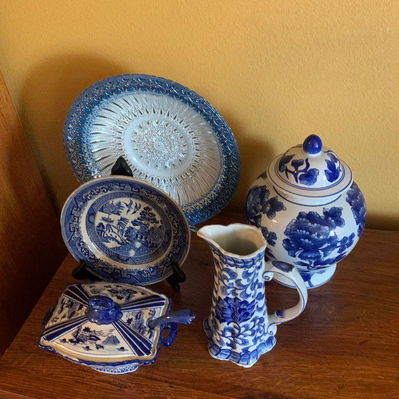 LOT 34. JAR, PLATES, PITCHER AND GRAVY DISH