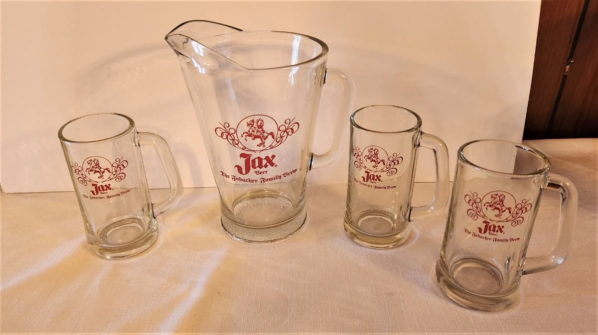 Lot #34 JAX Beer Pitcher and 3 vintage mugs