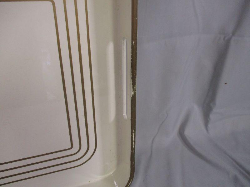 Overall, this tray is in very good condition. The only issue that I found is that there are a couple of minor spots of gold paint wear, but not significant. It measures about 19" x 12.25"