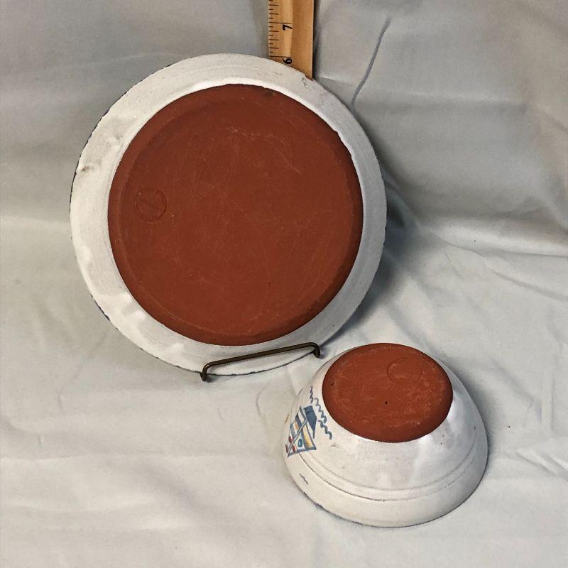 Both of these are in excellent condition. The plate is about 8.5" in diameter and the bowl is 5" in diameter.