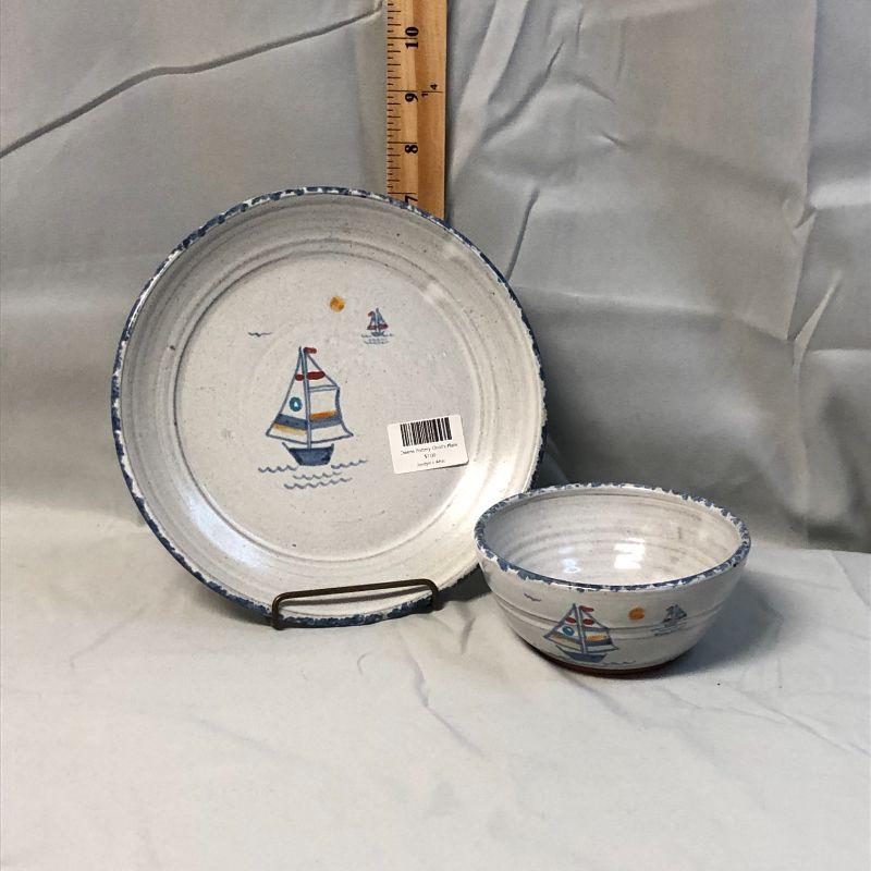Lot 34 - Owens Pottery Sailboat Bowl & Plate