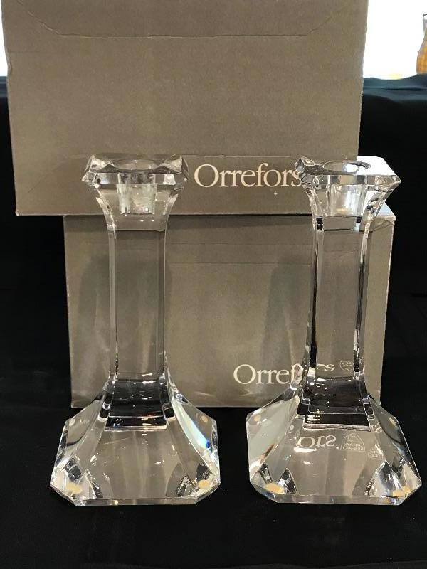 Lot #34 Pair of Orrefors 7" Regina Candlesticks