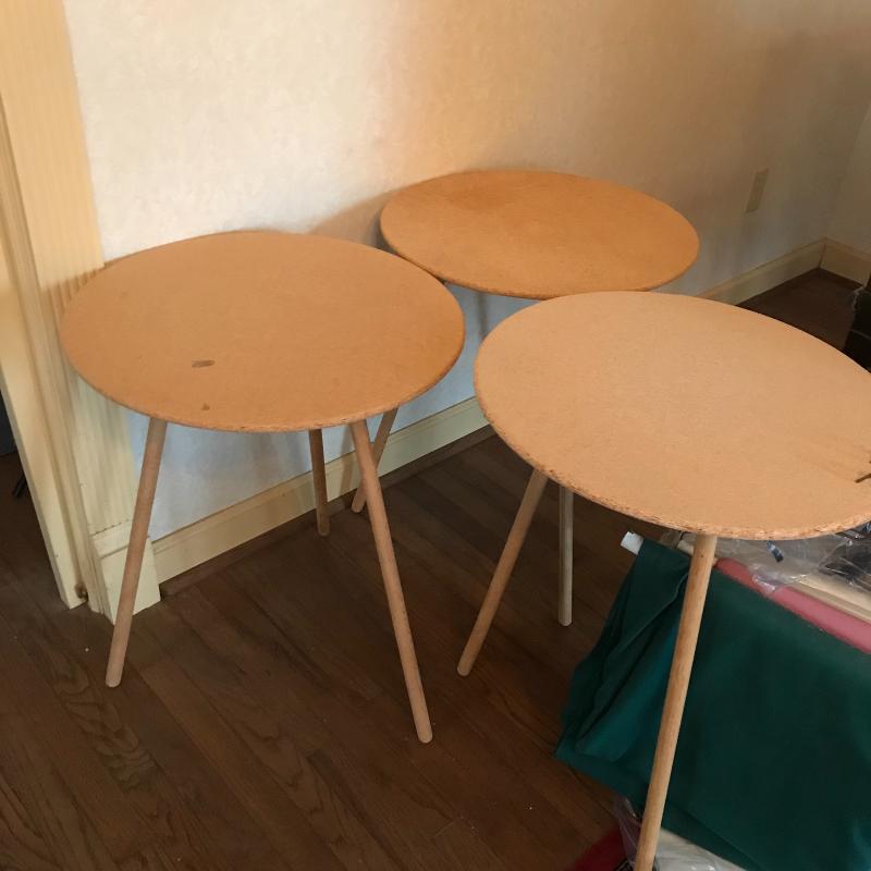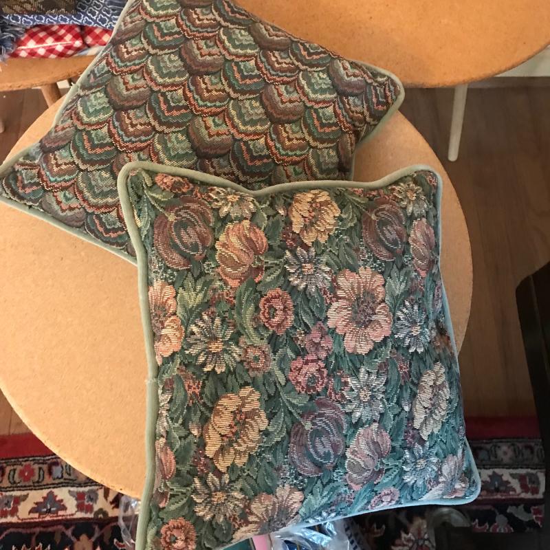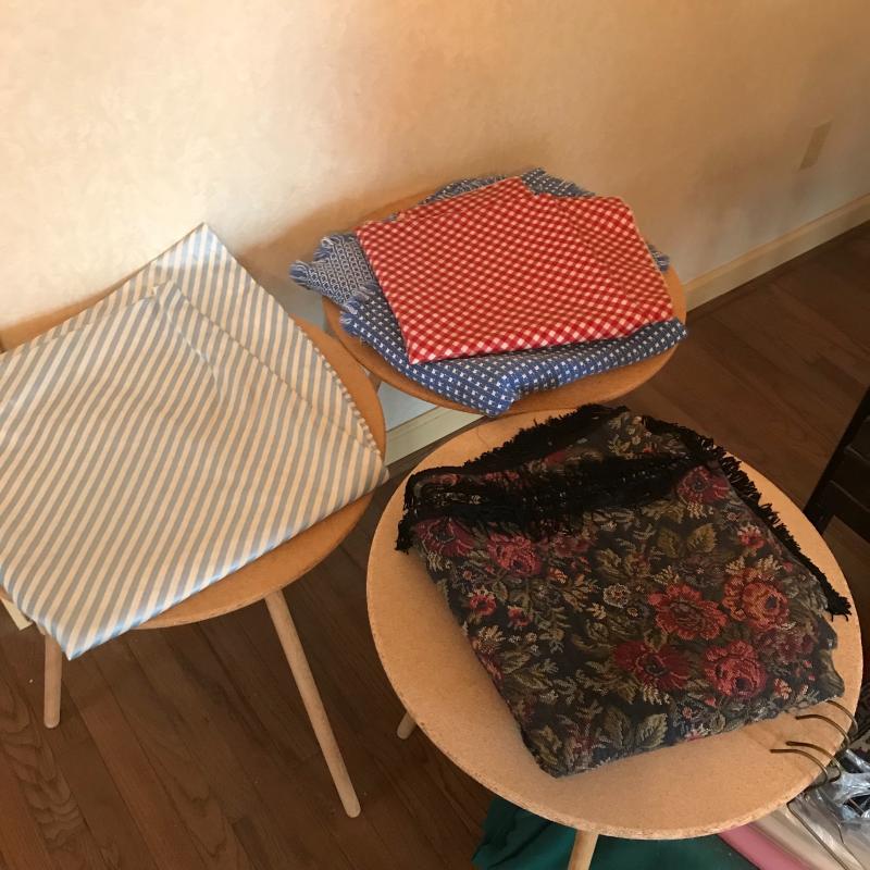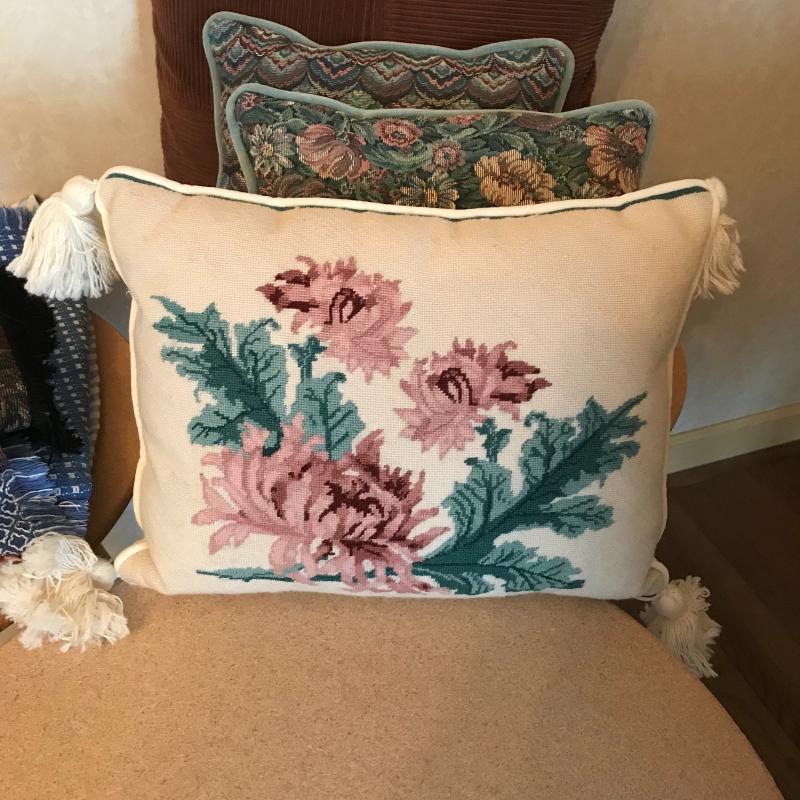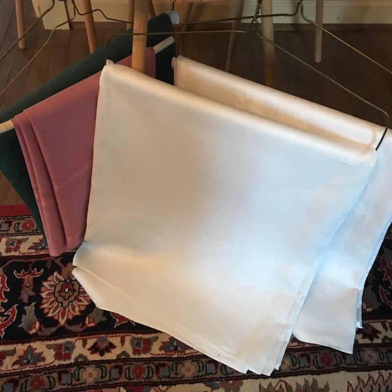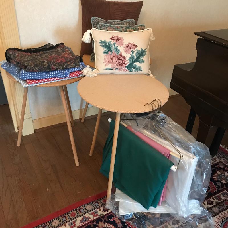 Three skirt tables standing 25” tall with 20” diameter tops, cross stitch pillow with tassels, and three more decorative pillows. Table cloths range from formal white to cloths that fit the small tables. This lot is available for local pick up in Flat Rock, NC only.
