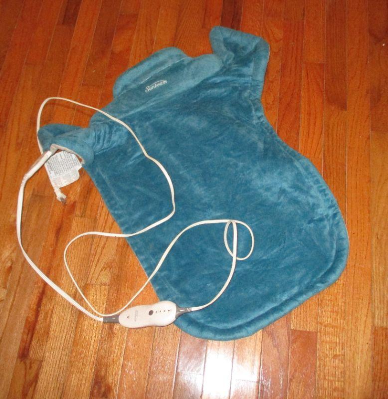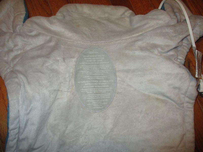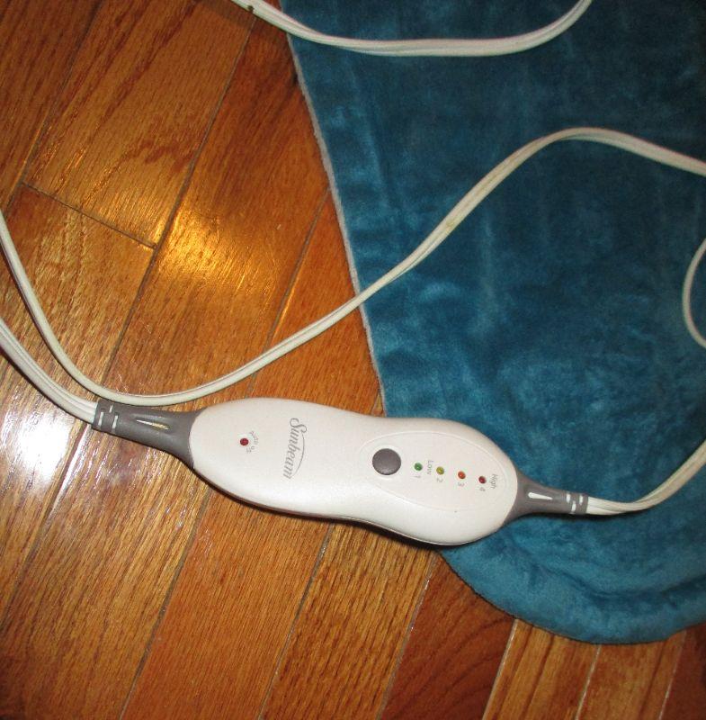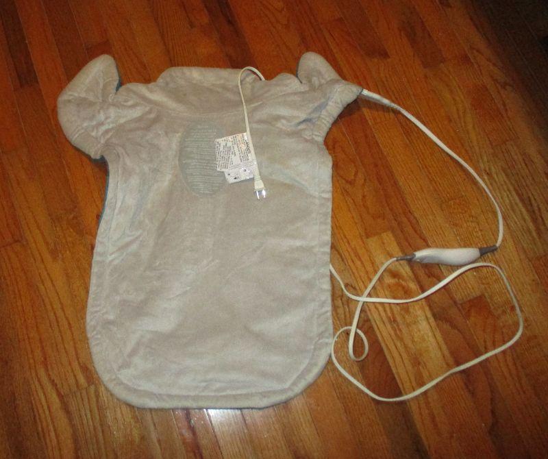 This is the deluxe model - no small plastic rectangle! It is lightly weighted along the top edge to keep it on and it was plugged in and tested for the high heat. It did heat up. It is washable.