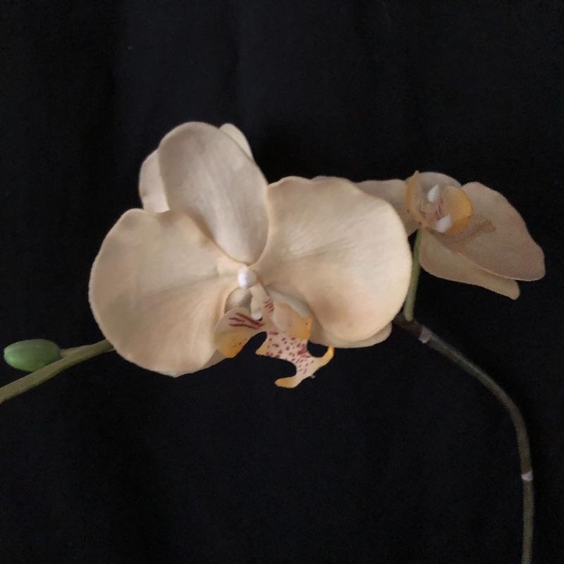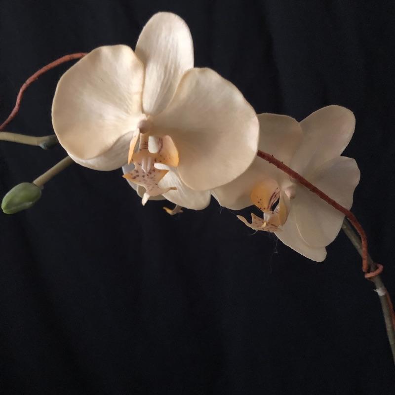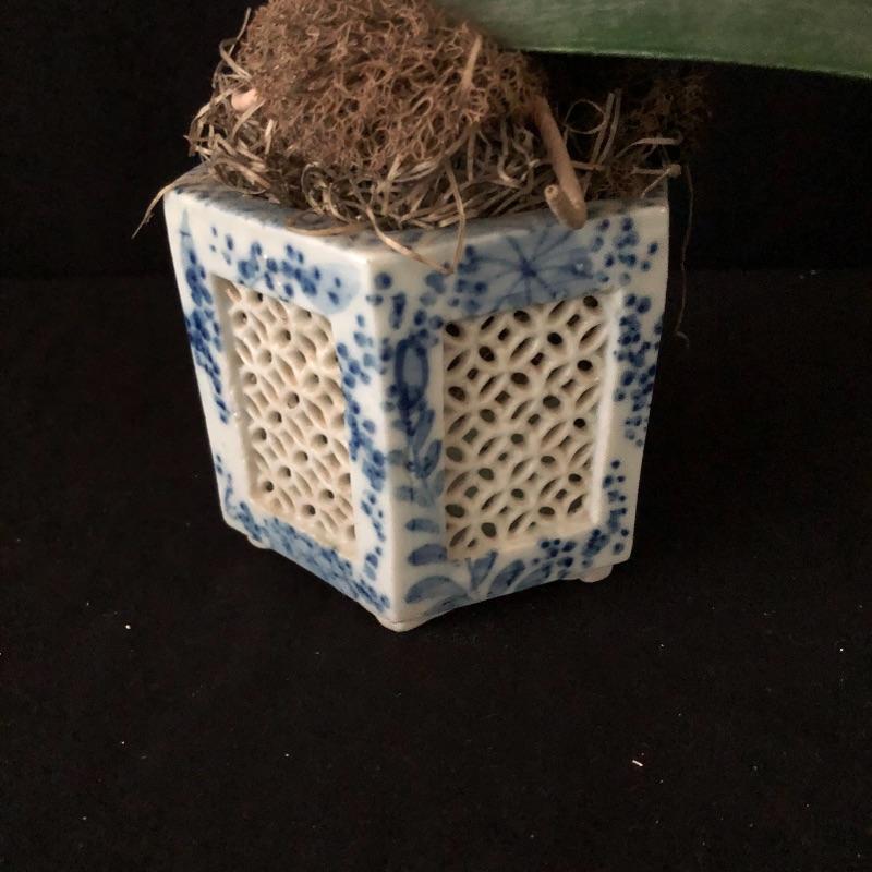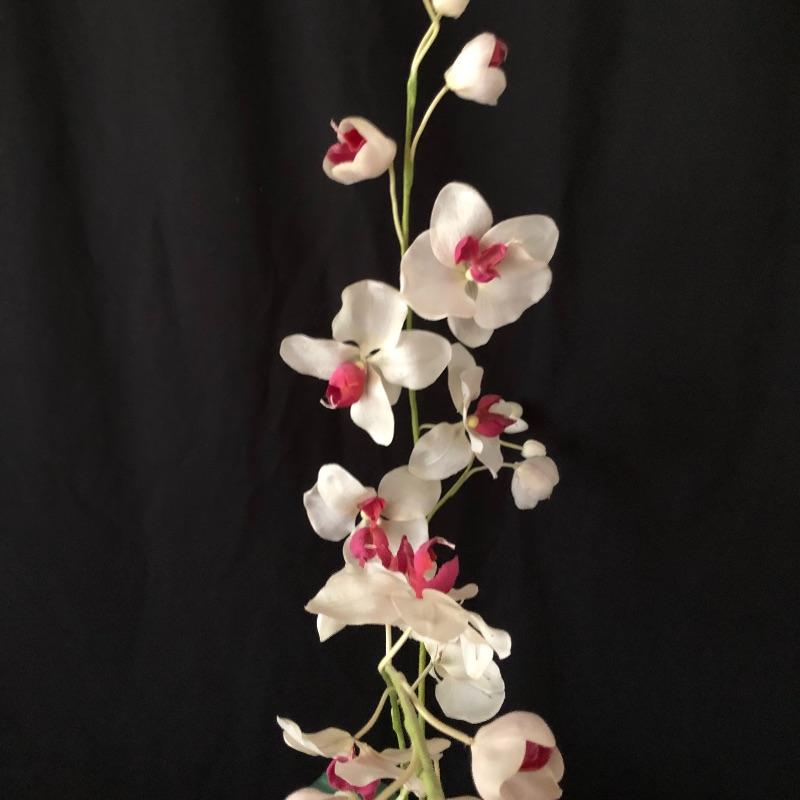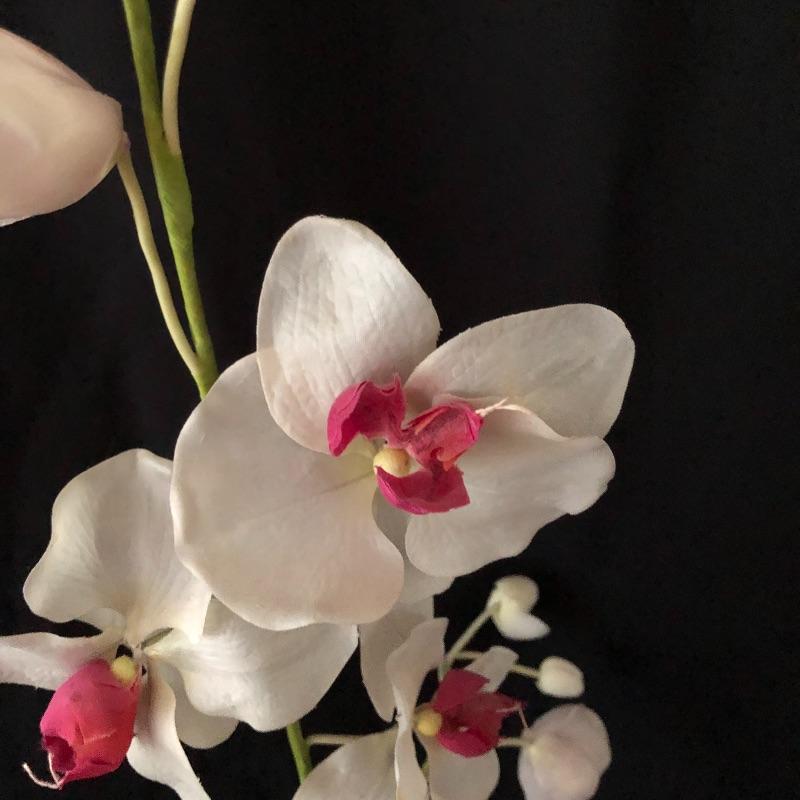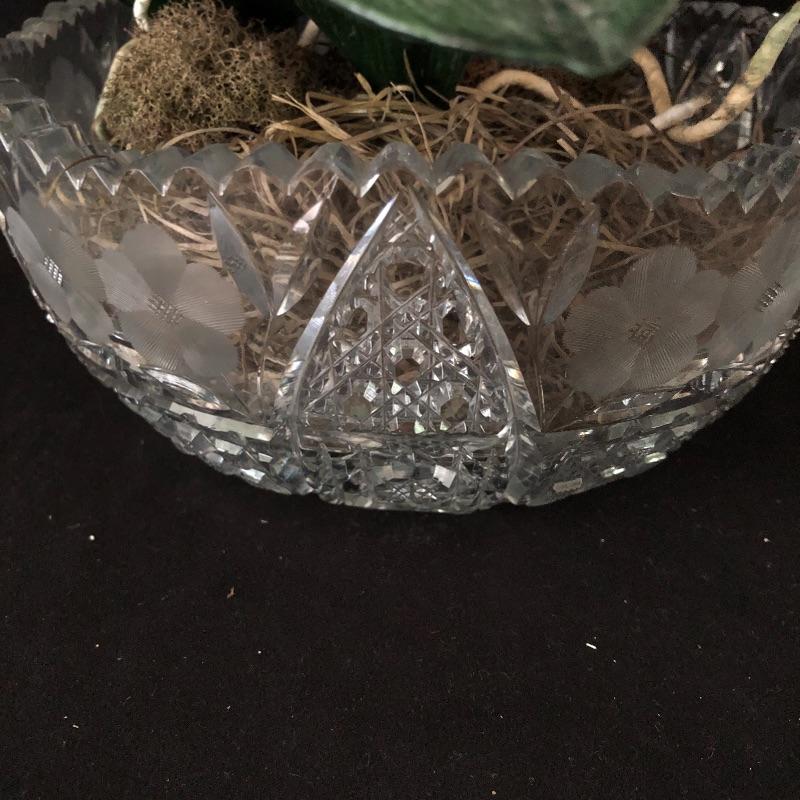 Brighten up your home with this trio of faux orchids. Lot includes faux orchid in a beautiful cut glass bowl, orchid in a blue and white pot and a smaller blue and whit pot. Largest orchid measures 33” tall.
