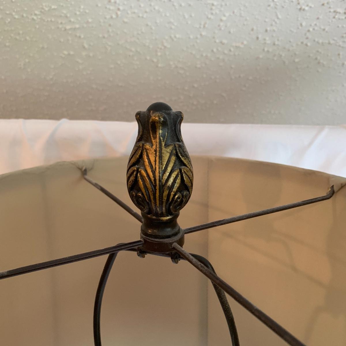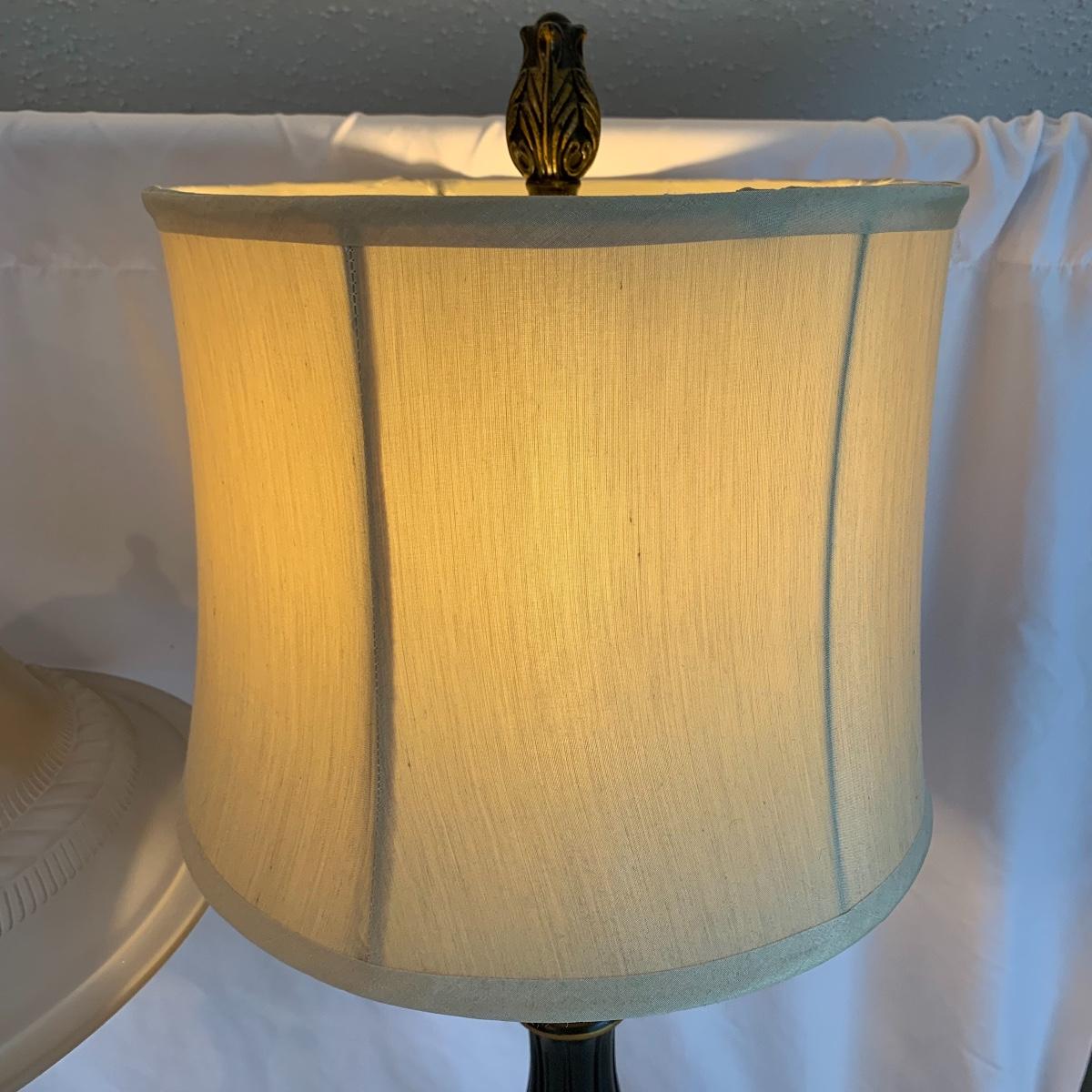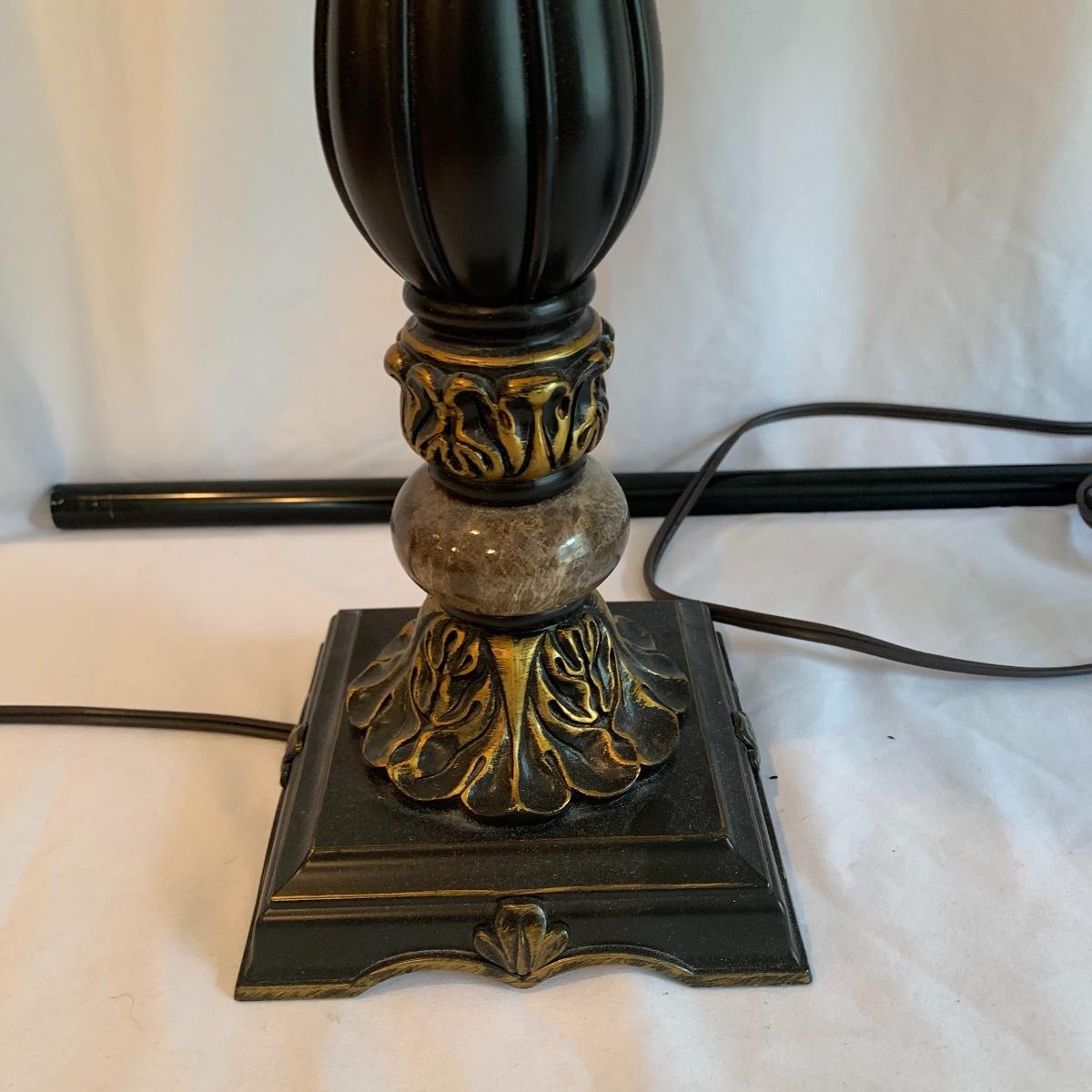 Light up your life! This lot consists of three lamps, two a matching pair. All three feature decretive trim details. The lamp in the middle has a glass shade that is beautiful when lit. The matching pair stand 30” tall, and the other is 24” tall. All three worked when tested. Local pickup only.